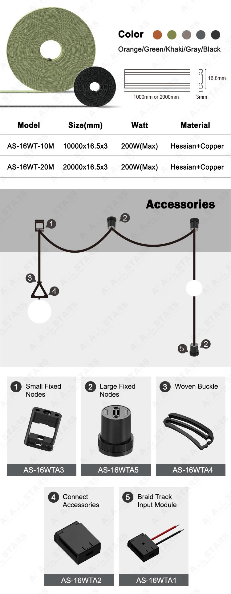 | Woven Track Advantages include In the lighting design, based on the use of traditional lines and tracks, get rid of the constraints in space design, expand the thinking of lighting designers to achieve unrestrained lighting display. This is not only the effect of the lighting display, but also the brush of the lighting designer for the space lighting design, which is a set of flexible artworks! An extension of the braided track can be obtained by placing a fulcrum on each position where the track is pulled. The fulcrum has a variety of installation methods, can be installed on the ceiling, can also be installed on the aluminum rail, can be used as a power fulcrum, that is, can be used as an expansion fulcrum, not subject to environmental restrictions.According to the different needs of space lighting design, flexible application of fulcrum and lamps to achieve the ideal lighting enjoyment. |