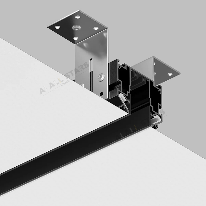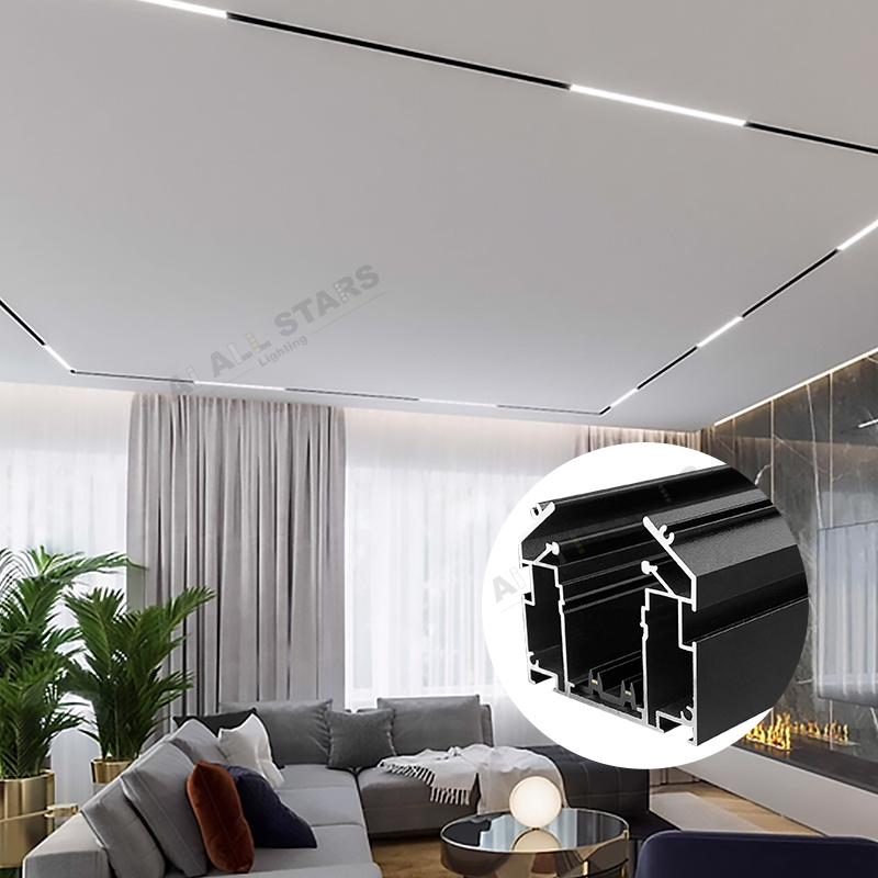 Integrates 48V magnetic tracks into stretch ceiling aluminum profiles, enabling tool-free attachment and repositioning of magnetic lights (spotlights, linear lights, RGB modules). This flexible system allows quick adjustments to lighting layout, making it suitable for dynamic spaces like retail stores, hotels, or multi-purpose event halls.