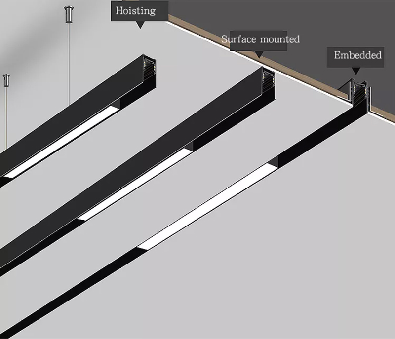 | Due to the recent magnetic track lighting new trend, with the popularity of minimalist style, more and more space decorators are choosing to use magnetic track lights and linear lighting fixtures.it creates the vertical and horizontal styles on the wall and ceiling to meet with many creative DIY lighting ideas. Linear lighting fixture can match different decoration effects according to different spaces, On the premise of satisfying basic lighting functions, Magnetic track light is the flexible track lighting whereby the light can be easily plug, unplug and slide track lights processes within the track. This guarantees a great freedom of lighting arrangement, simplifying colour and styling. Very creative and fashionable. In this case, the magnetic lighting system which combines all linear led lights emerges as the times require, and there is a trend to replace the conventional led track lighting and the conventional linear lamp in the future. Magnetic track light also great for all types of rooms and event. The slim design of tracks can perfectly fits any space in your home. Some designers are like to recommend magnetic track light because it can play around with the lighting focus. Magnetic track light give a cleaner and neater look to the overall interior design. Overall, a magnetic track light can be the perfect lighting solution for your home scheme. When people are still using the traditional fixture, you can be one to receive all the benefits from our magnetic track light. |