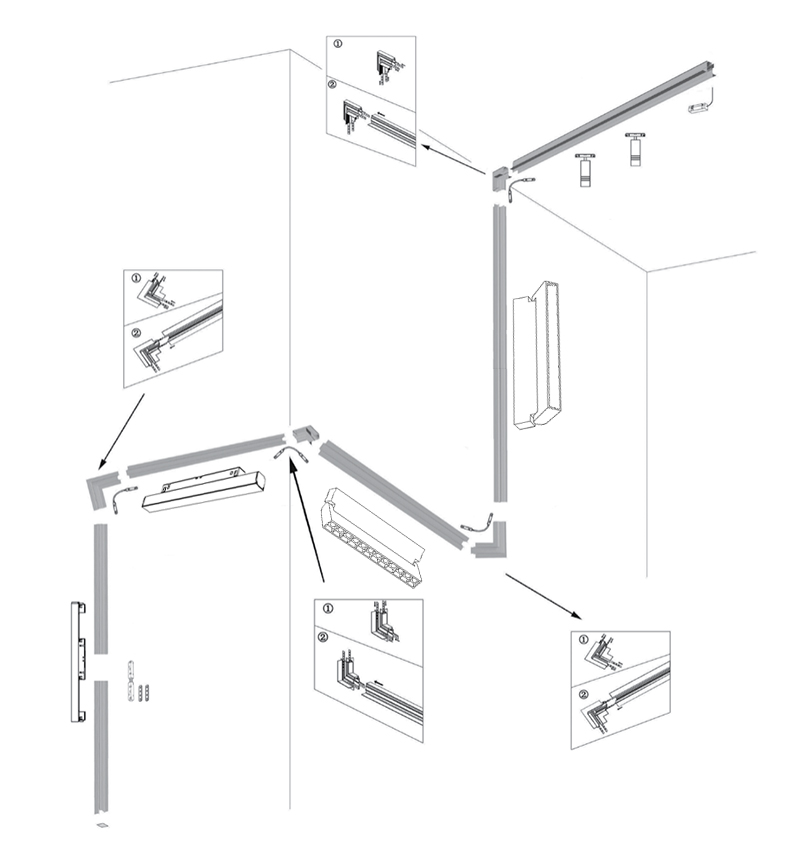 | How The Light Fixture Connect In The Magnetic Track Rail? The adapter is the lamp-holding fixtures. each has two metal tabs that connect it to the conductive copper strip inside the track.it has the magnet at the bottom of the adapter, suck the fixture on the iron bar in the track, besides, there are two lock device on the adapter to further secure the luminaire to ensure that it will not fall out of the track.Toolfree positioning, adjusting and focusing of light to meet specific needs of the room with this adapter. ![]() 3. Choosing Pre-configured Corners Accessories Pre-configured corners complete the system that can run up, around and across walls and ceilings. it helps you expand the system’s application range.you will know which adapter or connectors you request as follows: ![]() |