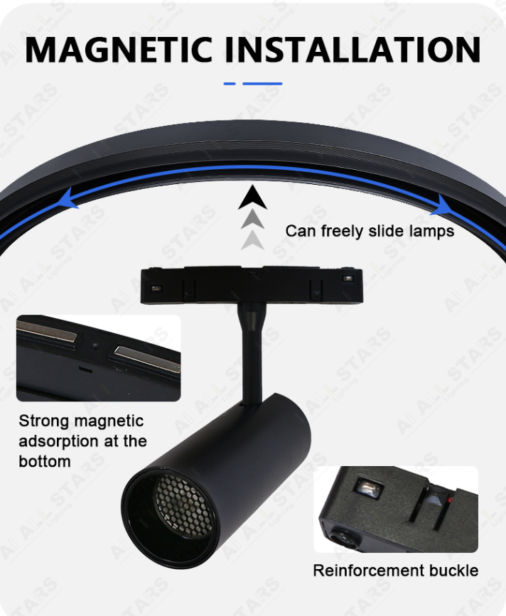 Magnetic track lighting systemsare easy to install. The track itself easily mounts to any surface, and the lights are also magnetic, snapping into place. Installation is largely tool-free, making it easy for both homeowners and tenants to customize their lighting schemes. Whether you're an experienced DIY enthusiast or a designer, magnetic track lighting offers a quick, clean, and convenient way to transform your space.