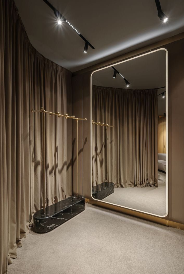 The adjustable spotlights in the fitting room have solved the "shadow problem". According to the size and layout of the fitting room, the beam Angle of the spotlights can be flexibly adjusted, allowing customers to view the details of the clothing more clearly. The high color rendering design makes the colors more realistic