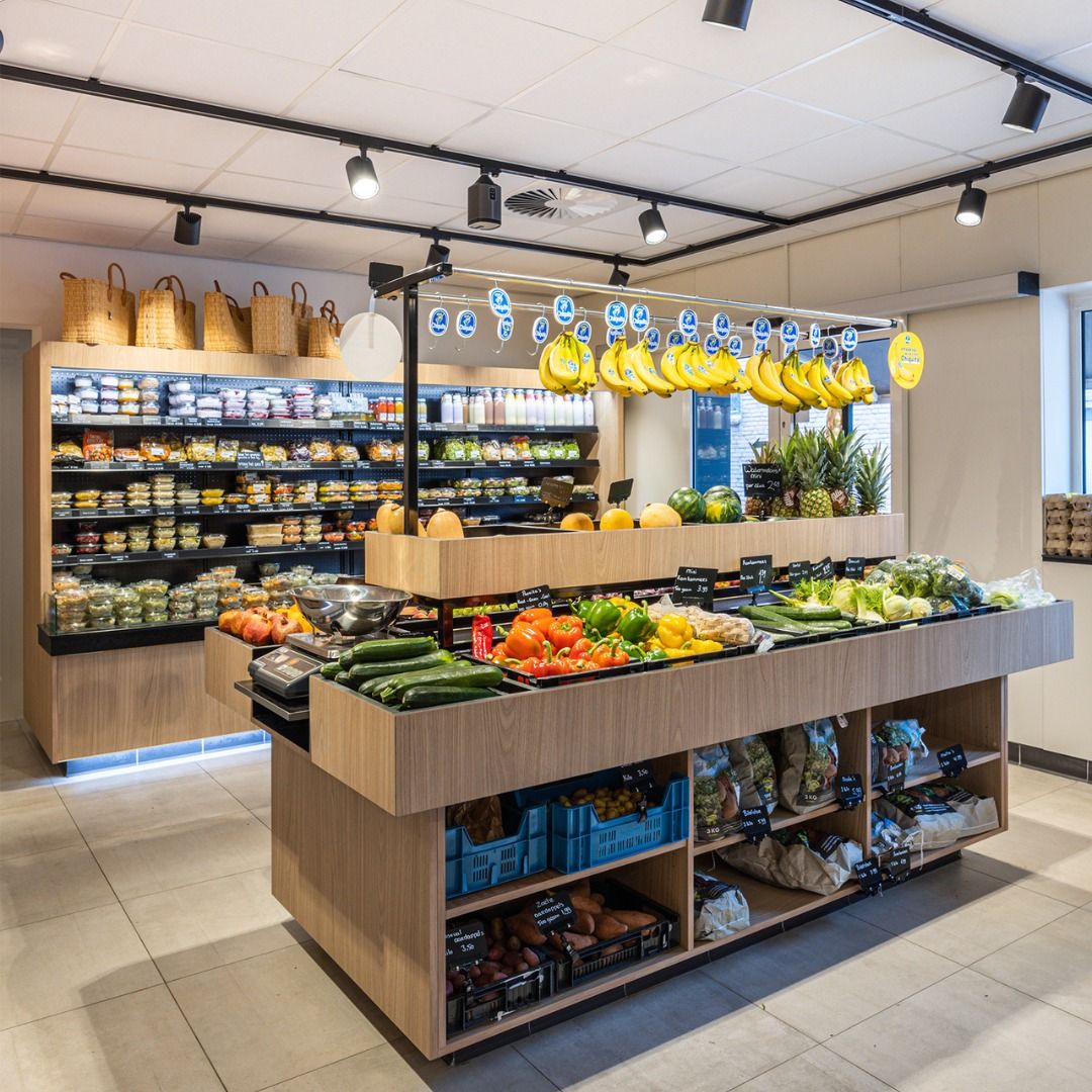 - Fresh produce area: 3000K warm white high-color-rendering track lights are selected. High color rendering, truly restoring the natural color of fresh products, making vegetables greener, meat more rosy, and aquatic products fresher, effectively enhancing customers' purchasing desire.