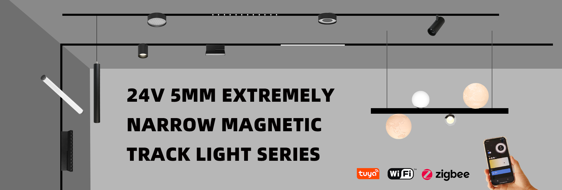 24V 5mm Extremely-narrow magnetic track light, witha complete range of styles , suitable for jewelry stores, cabinets and other scenarios. There are multiple tracks to choose from and itsupports four installation methods: surface mounting, hanging, embedded mounting, and fabric dragging .