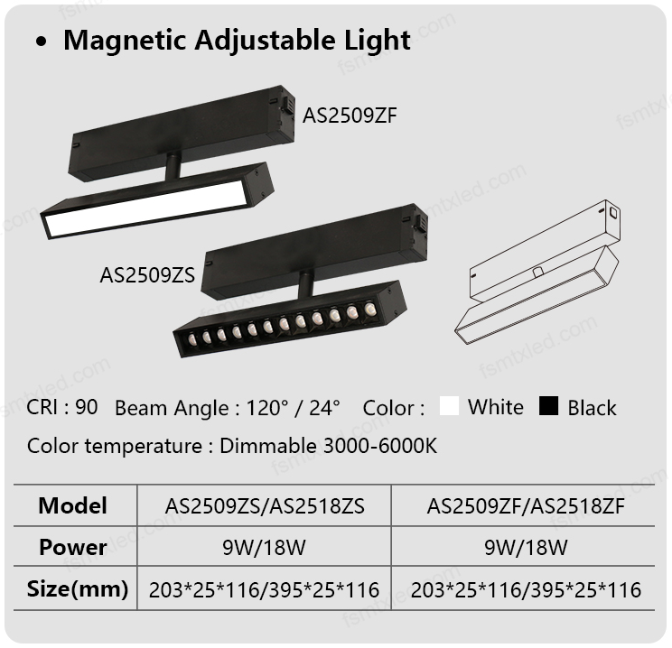 The 220V 25M magnetic track light is specially designed for convenient installation and safe use. It does not require an additional transformer and can be directly connected to the power supply for use, greatly simplifying the installation process. It is equipped with an internal anti-electric shock protection device, effectively reducing the risk of use and making lighting in both home and commercial scenarios more reassuring. Meanwhile, it supports intelligent color temperature adjustment from 3000K to 6000K, ranging from warm and soft warm light to clear and bright cold light, easily adapting to the lighting needs of different time periods and scenarios, combining practicality and flexibility.