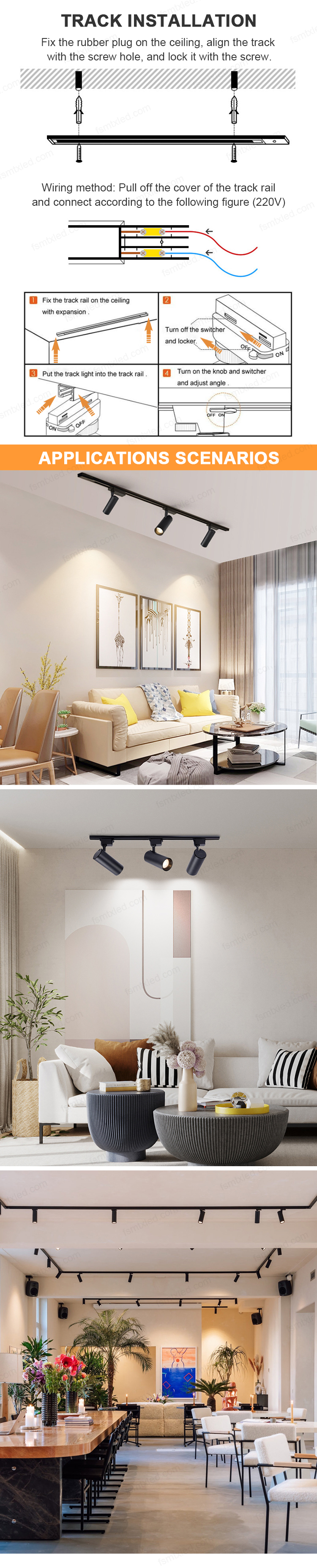• High Quality Material.3-wries track lighting track housing was made of alum-alloy profile that is durable.