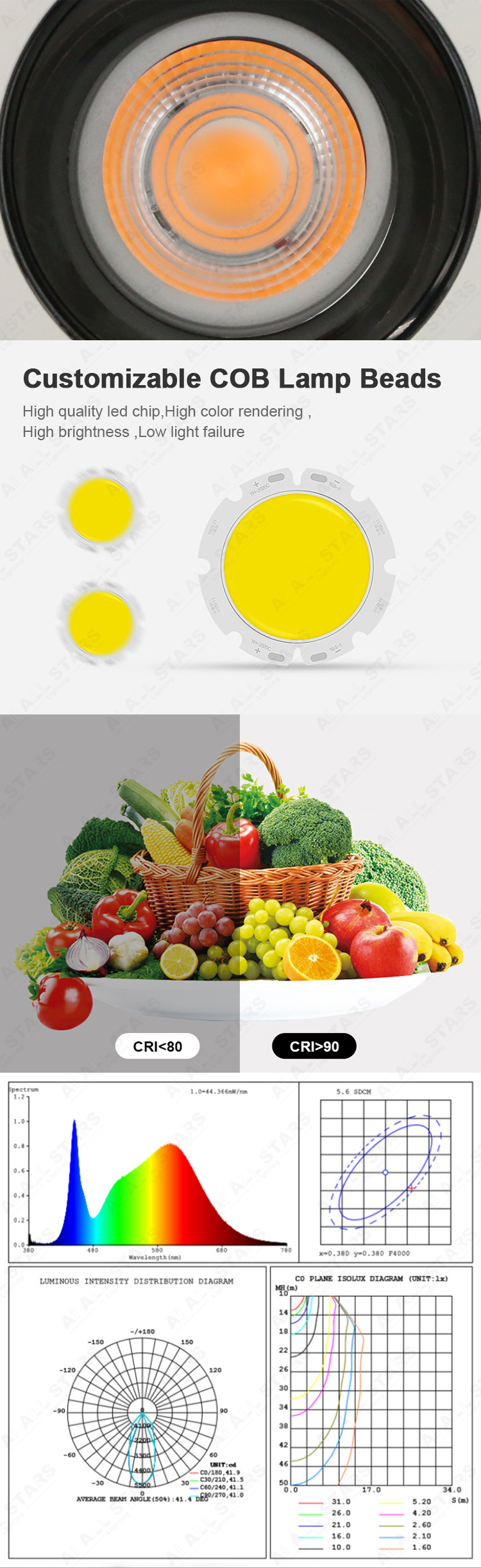 | The LED spotlight is a kind of downlight, which can also be called LED wall washer downlights, it is non-directional lighting, mainly used for accent lighting for museums, libraries, hotels, supermarkets, hospitals, shopping malls, and living rooms, etc. The led spotlights mainly are 15°, 24°, and 36° narrow beam angles, Great for highlighting features of the object being photographed. And its CRI is up to 90. |