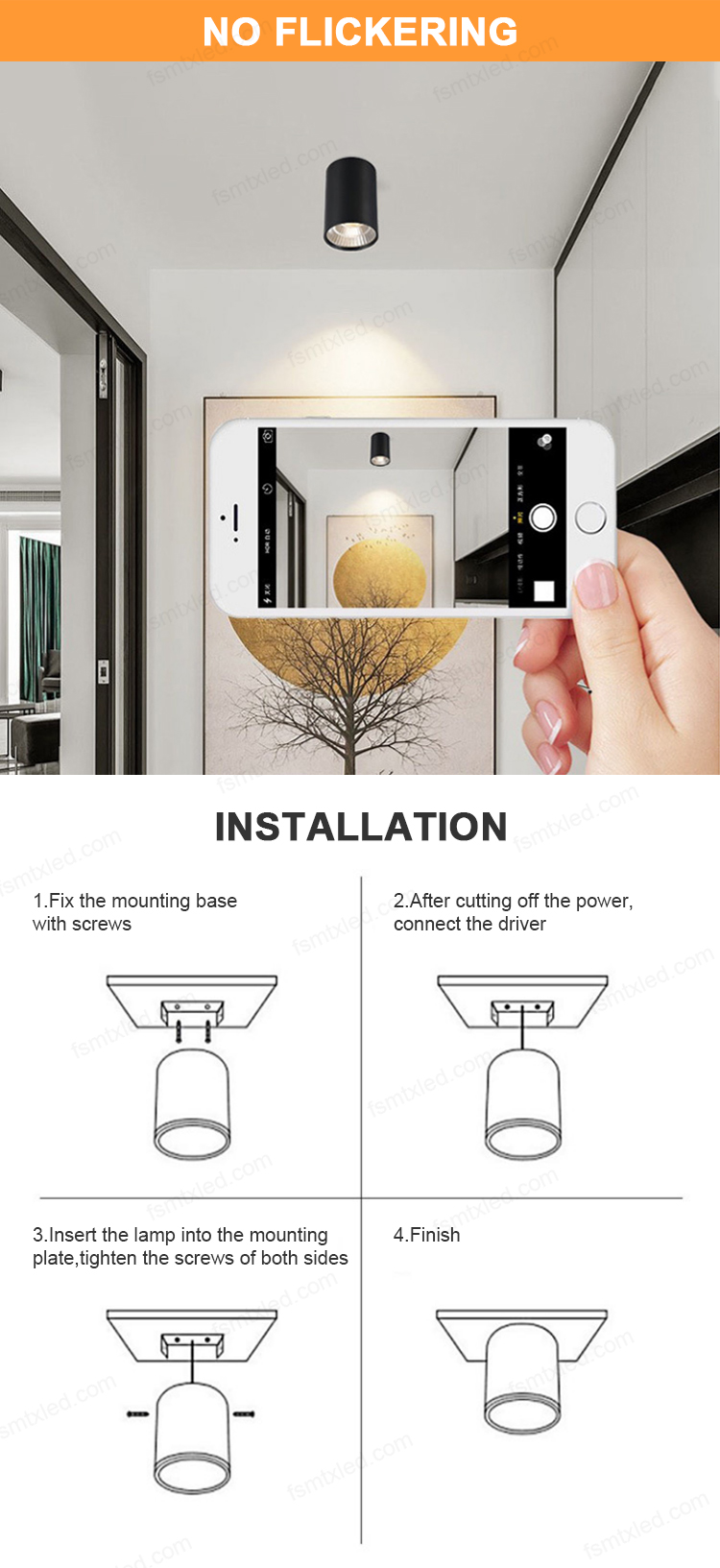 • Adjustable color temperature.The lamps can be adjusted to 300k, 400k, 600k.