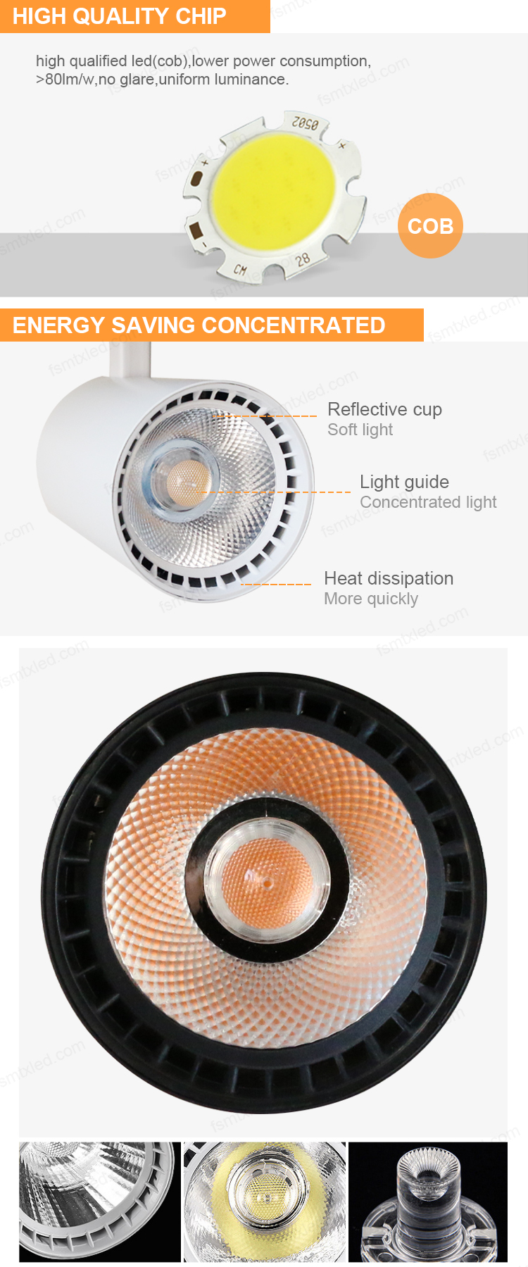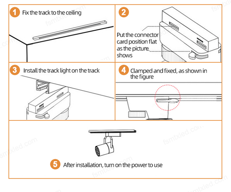 The track lights are compatible with various track bars. The design of the lamp body is exquisite and it features a flexible angle adjustment function. With the help of different track rails, they can achieve diverse layouts, providing precise and variable lighting effects for various spaces.