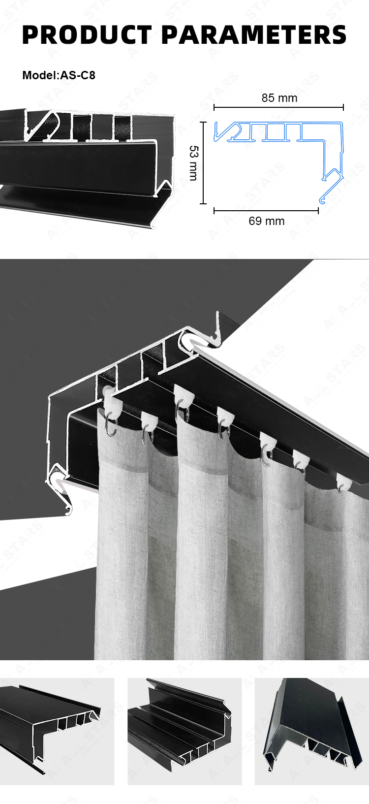 • AS-C8 Hidden Stretch Ceiling Curtain Track Manufacturer
