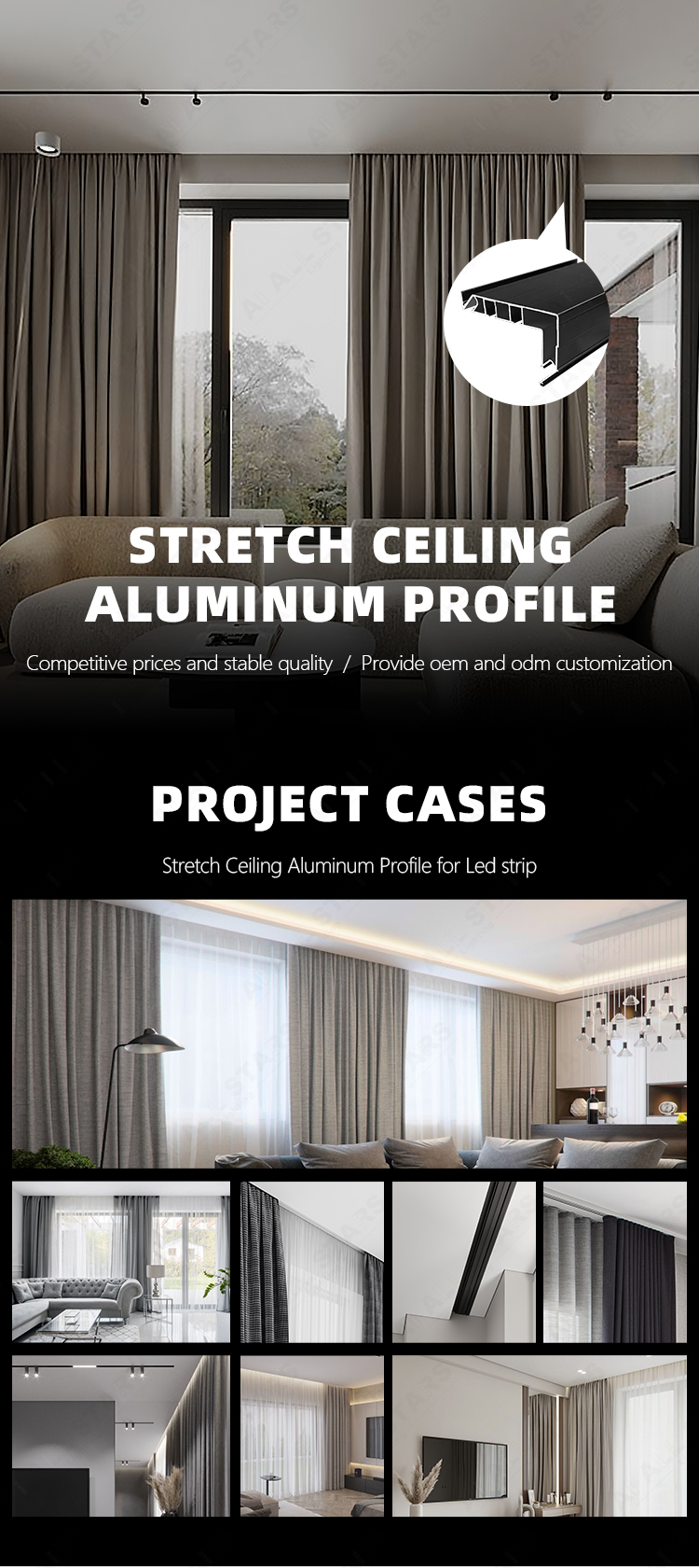 • high-end villa curtain stretch ceiling profile