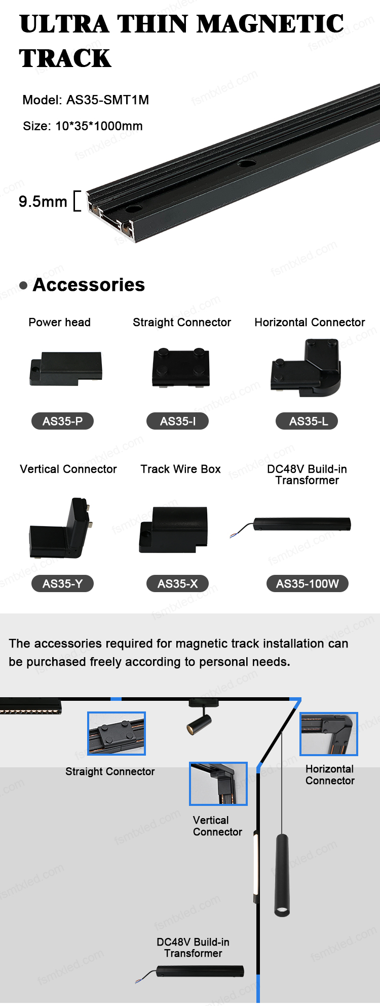 Next, let's take a look at the magnetic track and other accessories corresponding to the AS35 ultra-thin magnetic lightings.