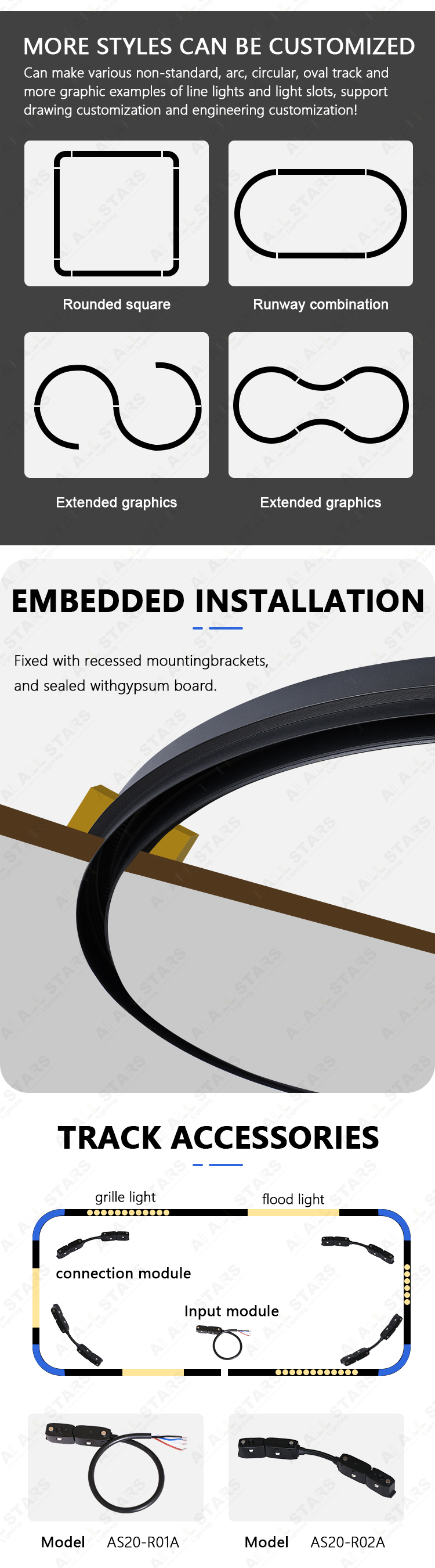 Customize various non-standard tracks:Can make various non-standard, arc, circular, oval track andmore graphic examples of line lights and light slots, supportdrawing customization and engineering customization!
