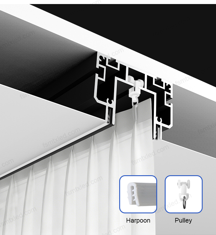 The curtain aluminium profiles are meticulously crafted from high-quality aluminium alloy. They are light in weight but very durable and corrosion-resistant. They can be combined with PVC film to form a raised ceiling, while ingeniously concealing the curtain tracks, making the overall space appear more neat and tidy. It not only meets the decorative requirements of the stretched ceiling but also ensures that the curtains are not exposed during installation.