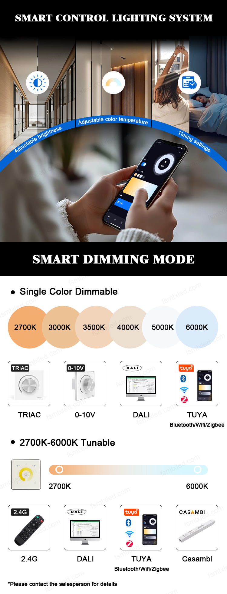 Introducing our 48V smart magnetic track light, whether you need to control individual lights or groups of them for synchronized effects, it offers flexible operation to adapt to any scenario. It is equipped with three smart systems - 2.4g wifi smart control, Bluetooth smart control and zigbee smart control - seamlessly integrated into the smart home setup, ensuring convenient connection and control.