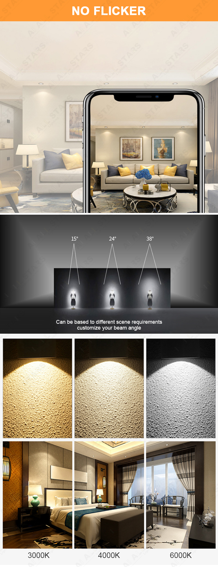 | The LED spotlight is a kind of downlight, which can also be called LED wall washer downlights, it is non-directional lighting, mainly used for accent lighting for museums, libraries, hotels, supermarkets, hospitals, shopping malls, and living rooms, etc. The led spotlights mainly are 15°, 24°, and 36° narrow beam angles, Great for highlighting features of the object being photographed. And its CRI is up to 90. |