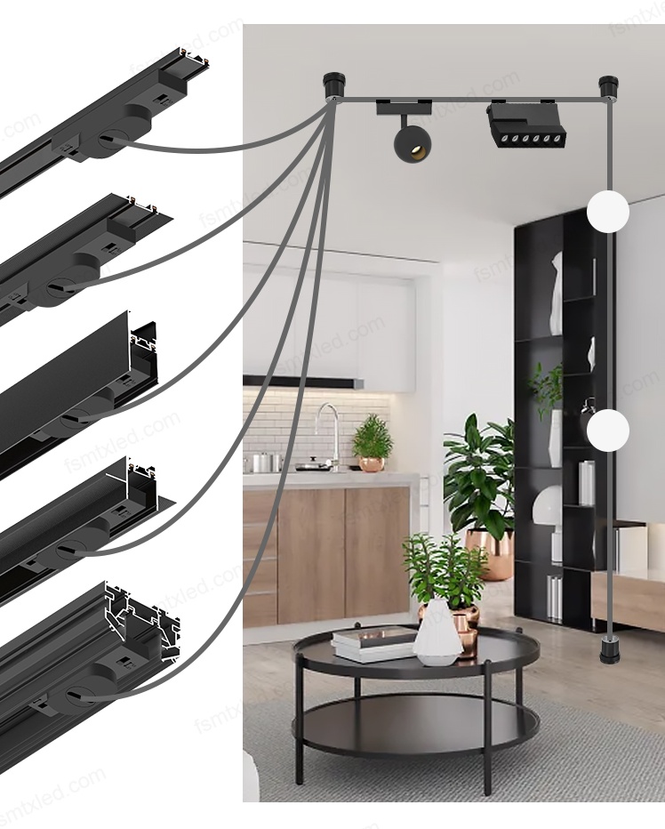 The 48V low-voltage power supply ensures safety. The 48V ultra-thin magnetic track light integrates into various spaces with its ultra-thin design. It achieves flexible installation and position adjustment through magnetic suction, and is paired with high-brightness LED to provide energy-saving and aesthetically pleasing lighting effects.