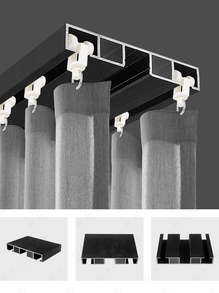 The curtain aluminium profiles are meticulously crafted from high-quality aluminium alloy. They are light in weight but very durable and corrosion-resistant. They can be combined with PVC film to form a raised ceiling, while ingeniously concealing the curtain tracks, making the overall space appear more neat and tidy. It not only meets the decorative requirements of the stretched ceiling but also ensures that the curtains are not exposed during installation.