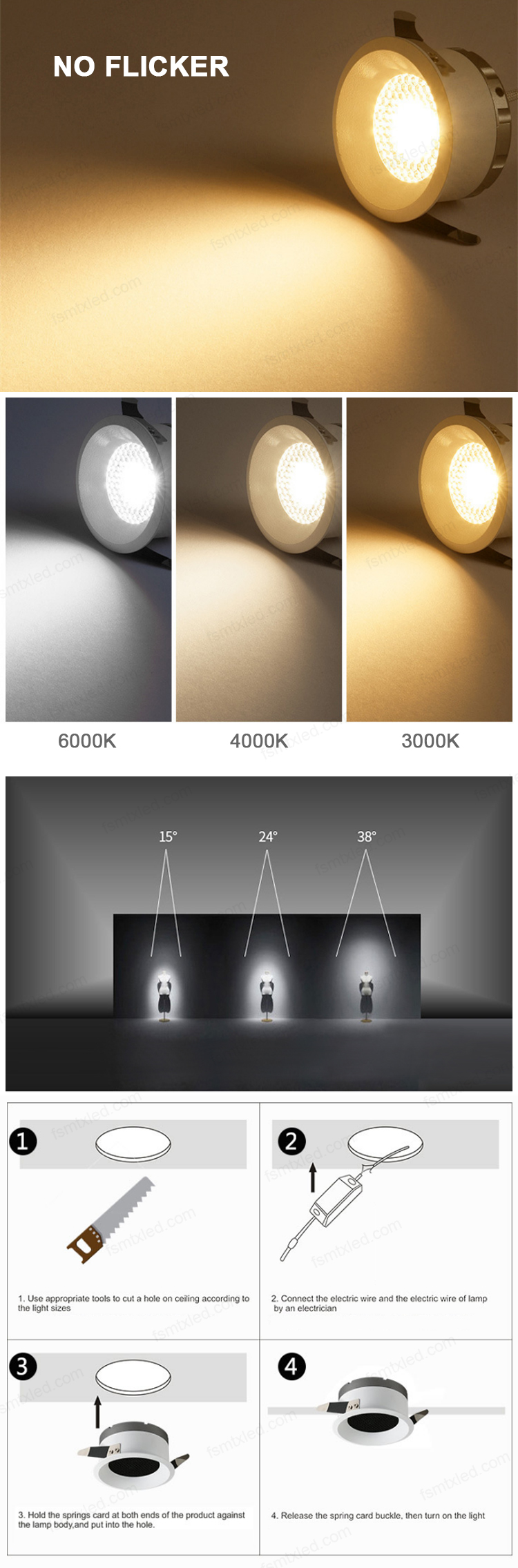 • Color Temperature(CCT):3000K/4000K/6000K