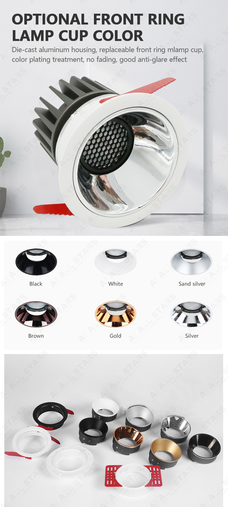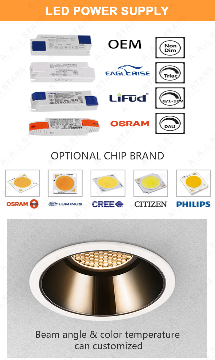 | Product Features: ● Material: Aluminum housing PC diffuser milky cover. Outer trim with deep anti-glare design. ● LED Chip: CREE LED Chips as standard with CRI80, But OSRAM LED with CRI90 is available. ● LED Drive: Intelligent bluetooth led power supply, High-precision components, compatible with a variety of equipment, perfect intelligent control scheme. ● Input voltage:100-240VAC 50/60Hz or 220-240VAC 50/60Hz. ● CCT: 3000K(Warm white ) 4000K(Neutral white) 6000K (Cool white) or Dimmable CCT 3000K-6000K ● Power and Cut size: 7W-12W (75mm ) ● CRI(Ra):>80 (>90 available) Power Factor:>0.5 or >0.9 ● Beam angle:15°24°36° ● Installation: Strong metal springs, easy to do the embedded installation into the ceiling. ● Certificate: CE/Rohs Certified. It is ok to do ETL, UL, CSA, SAA, CB smart down lights if needed. ● Application: Home Office/Hotel/Apartment/Supermarket/Mall/Workshop .etc |