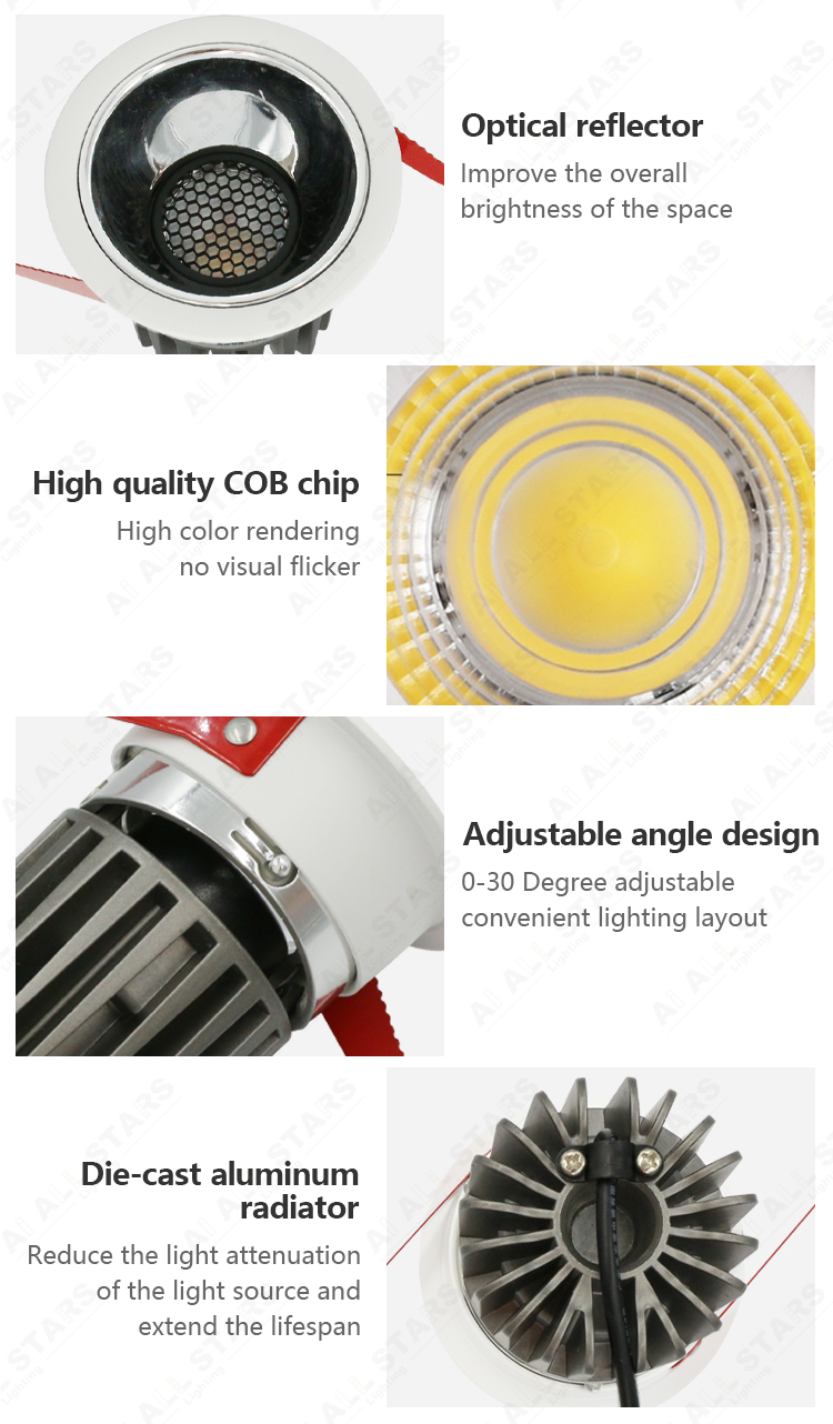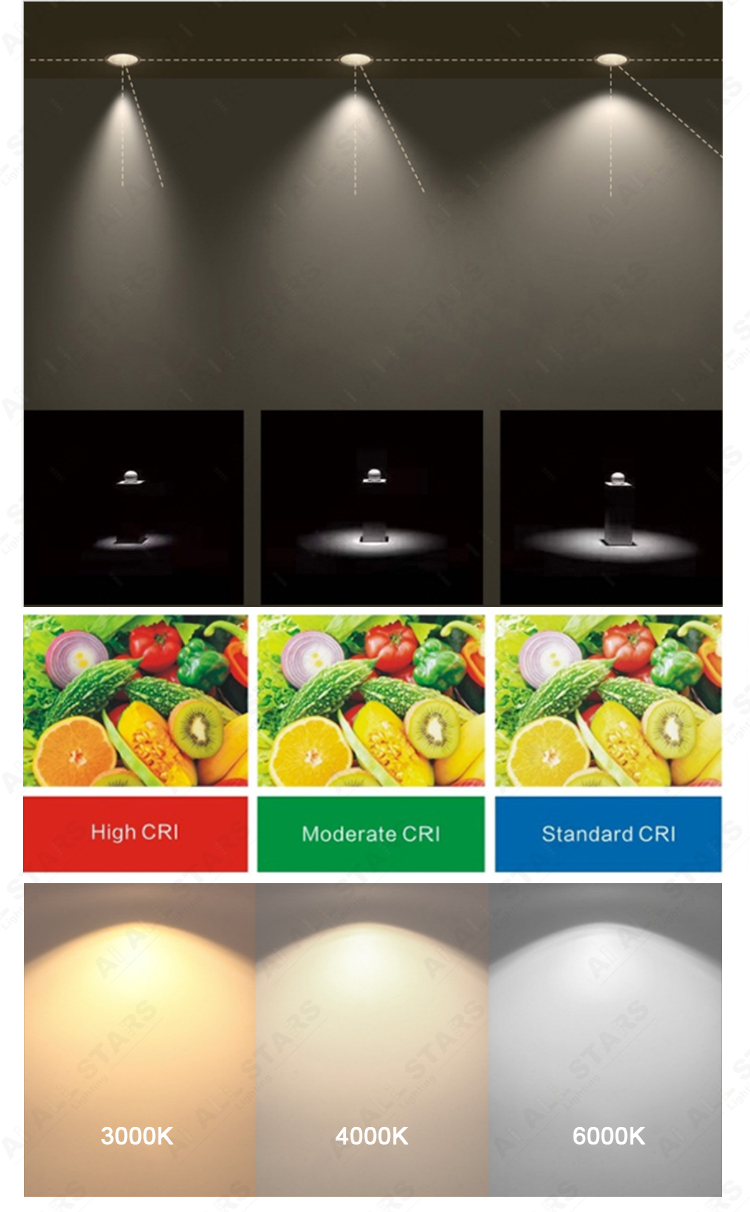 | The LED spotlight is a kind of downlight, which can also be called LED wall washer downlights, it is non-directional lighting, mainly used for accent lighting for museums, libraries, hotels, supermarkets, hospitals, shopping malls, and living rooms, etc. The led spotlights mainly are 15°, 24°, and 36° narrow beam angles, Great for highlighting features of the object being photographed. And its CRI is up to 90. |