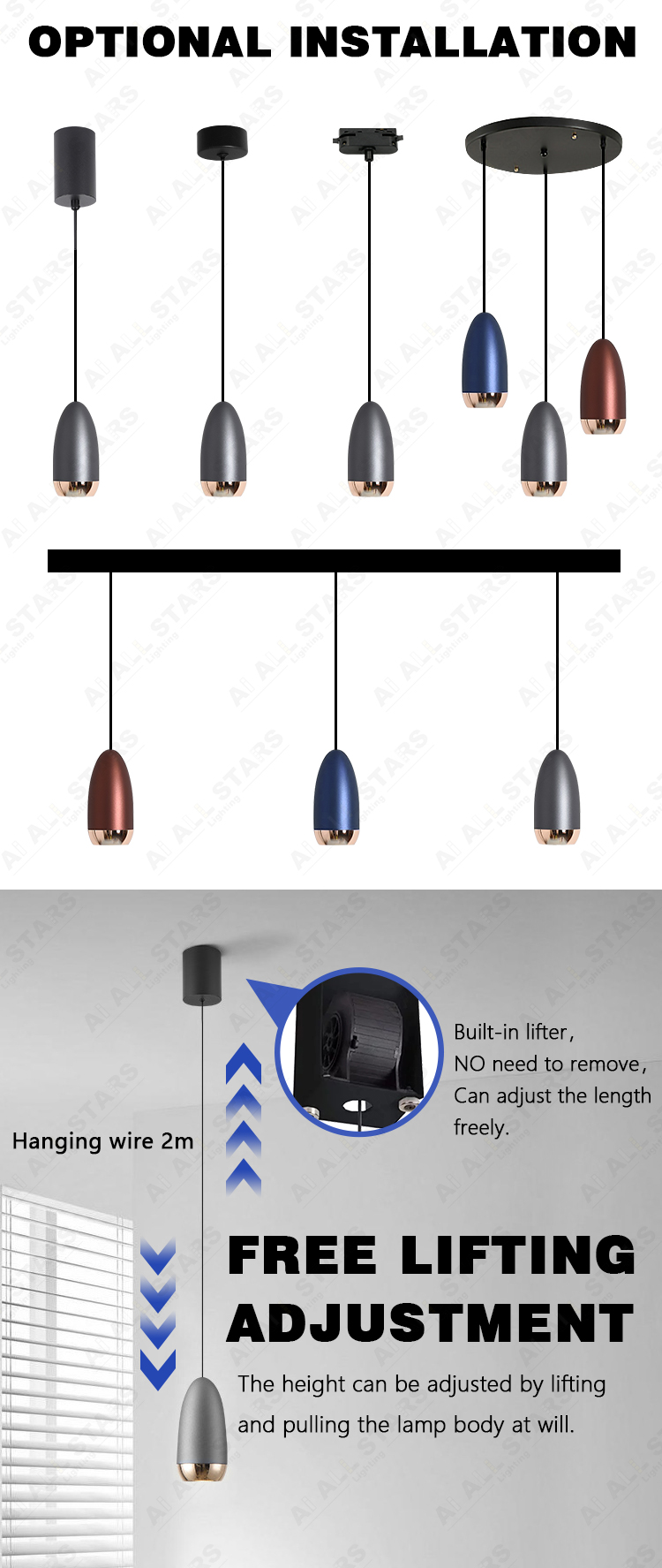 Led pendant light chandelier surface mounted suspension installation, very flexible, and easy to do installations. You can adjust the length of steel ropes to meet the different heights of the ceiling