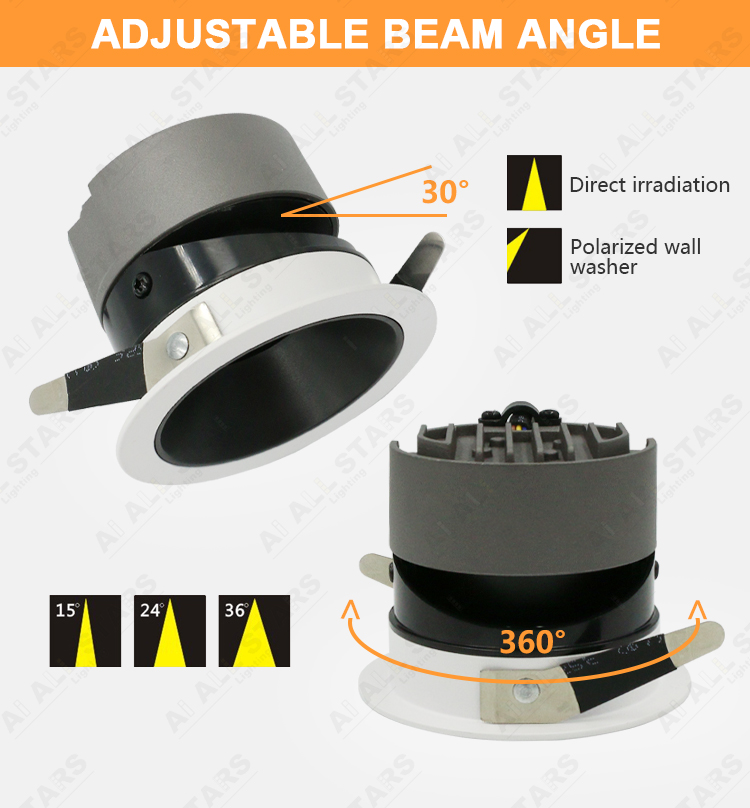 | The LED spotlight is a kind of downlight, which can also be called LED wall washer downlights, it is non-directional lighting, mainly used for accent lighting for museums, libraries, hotels, supermarkets, hospitals, shopping malls, and living rooms, etc. The led spotlights mainly are 15°, 24°, and 36° narrow beam angles, Great for highlighting features of the object being photographed. And its CRI is up to 90. |