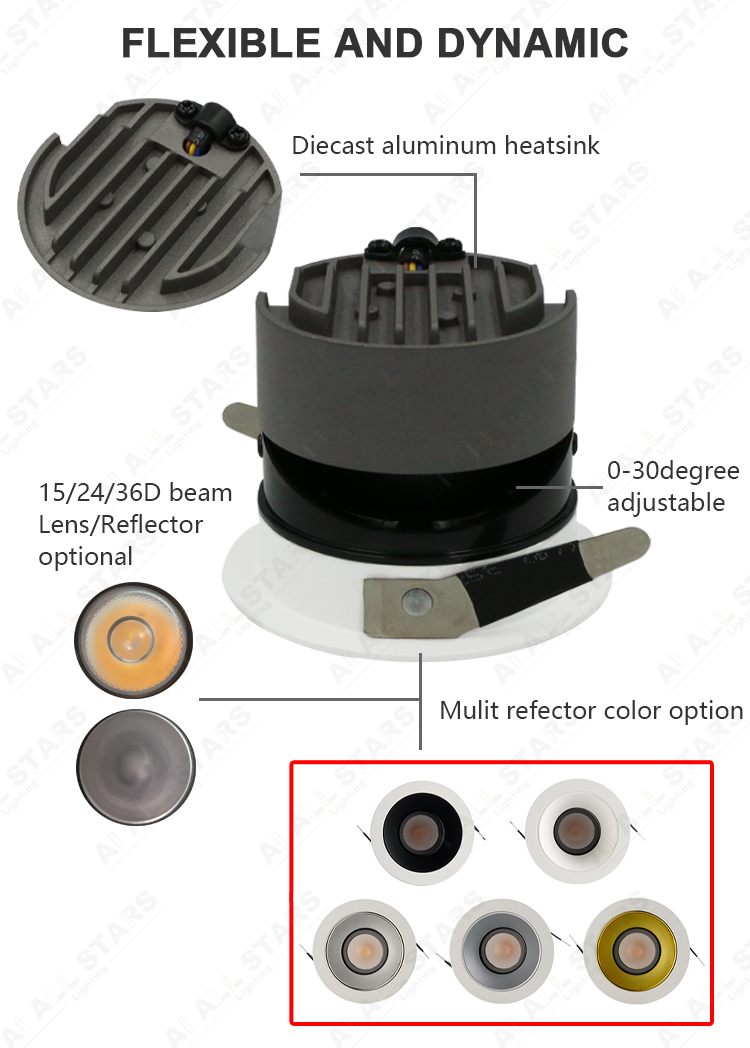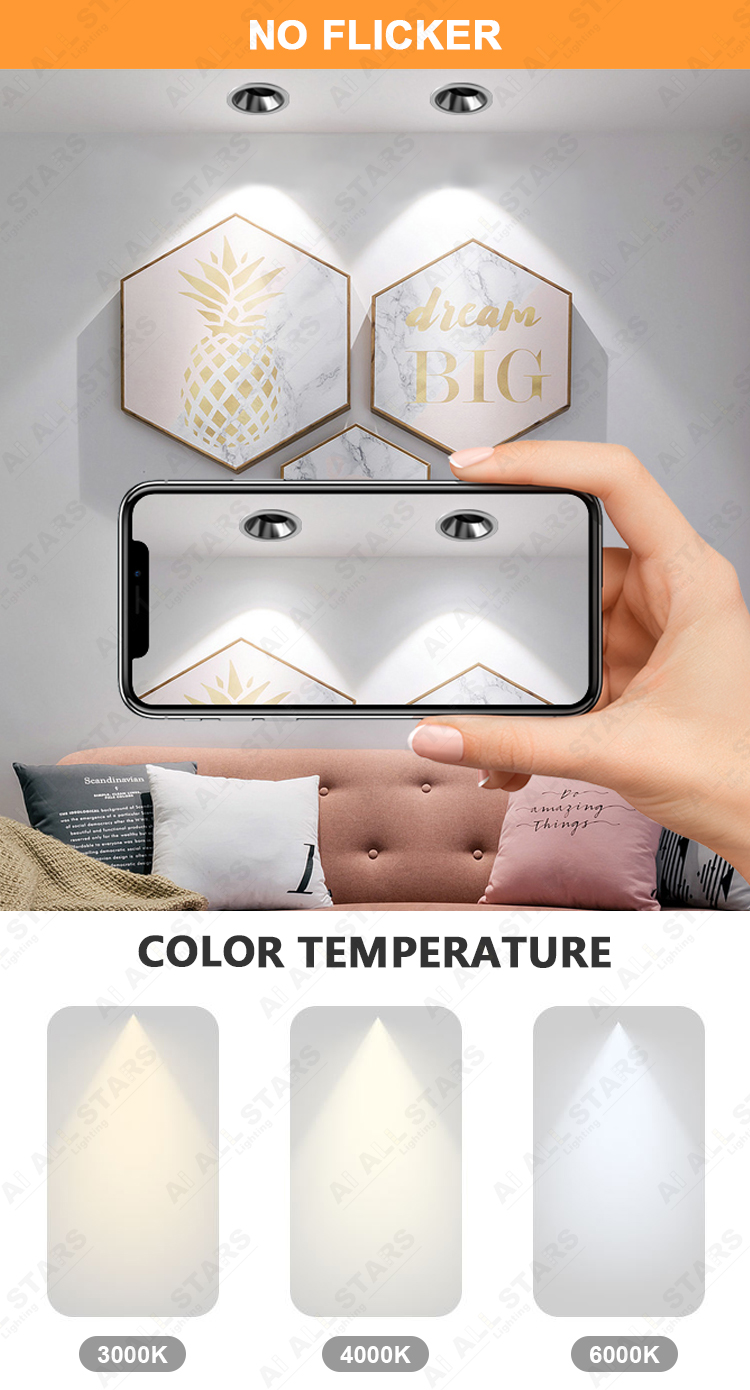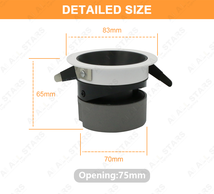| Product Features: ● Material: Aluminum housing PC diffuser milky cover. Outer trim with deep anti-glare design. ● LED Chip: CREE SMD LED Chips as standard with CRI80, But OSRAM SMD with CRI90 is available. ● LED Drive: Intelligent bluetooth led power supply, High-precision components, compatible with a variety of equipment, perfect intelligent control scheme. ● Input voltage:100-240VAC 50/60Hz or 220-240VAC 50/60Hz. ● CCT: 3000K(Warm white ) 4000K(Neutral white) 6000K (Cool white) or Dimmable CCT 3000K-6000K ● Power and Cut size: 7W-10W (75mm ) ● CRI(Ra):>80 (>90 available) Power Factor:>0.5 or >0.9 ● Beam angle:15°24°36° ● Installation: Strong metal springs, easy to do the embedded installation into the ceiling. ● Certificate: CE/Rohs Certified. It is ok to do ETL, UL, CSA, SAA, CB smart down lights if needed. ● Application: Home Office/Hotel/Apartment/Supermarket/Mall/Workshop .etc |