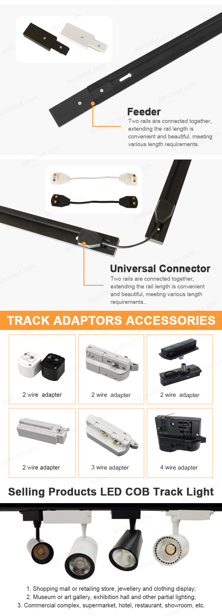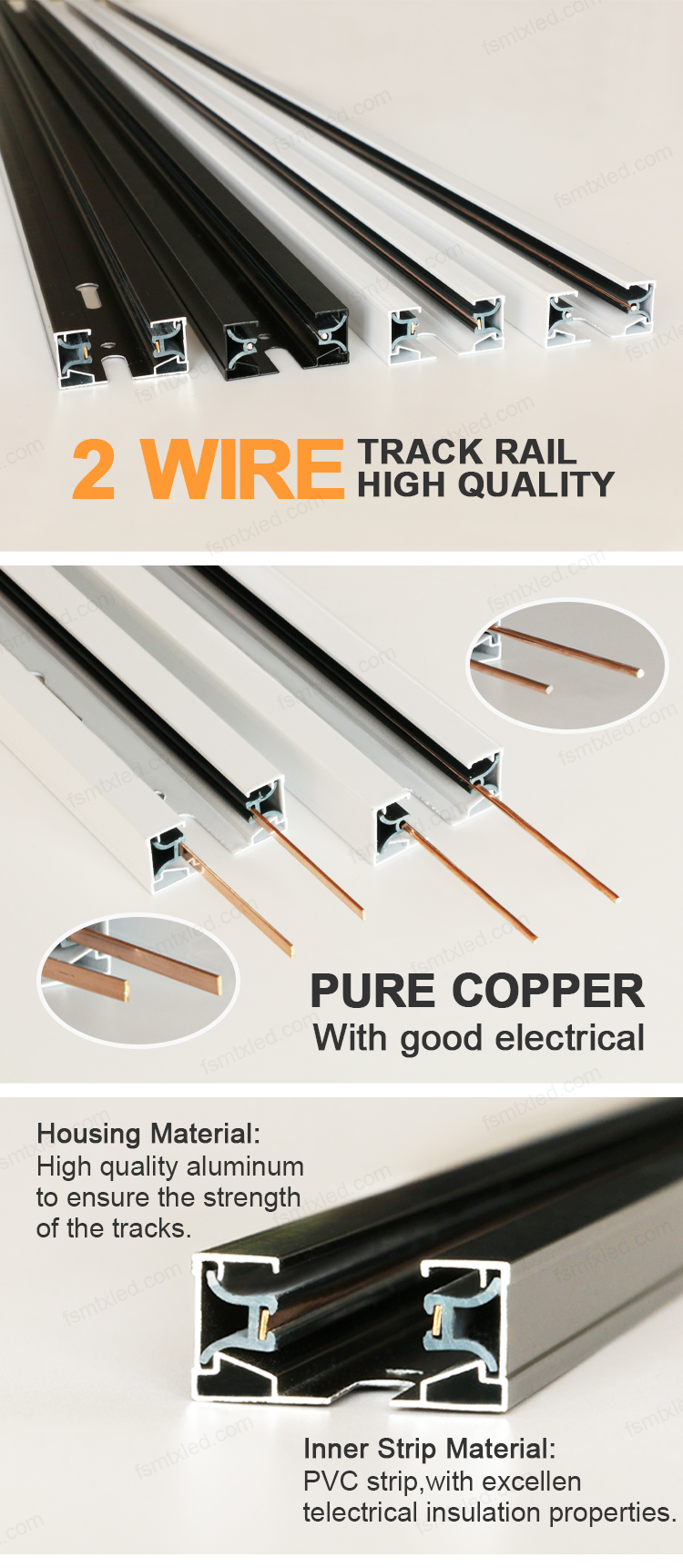 • High Quality Material.2-wries track lighting track housing was made of alum-alloy profile that is durable and good at thermal conductivity,surface finished with powder coating.