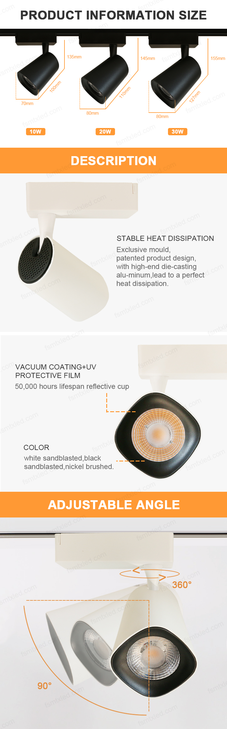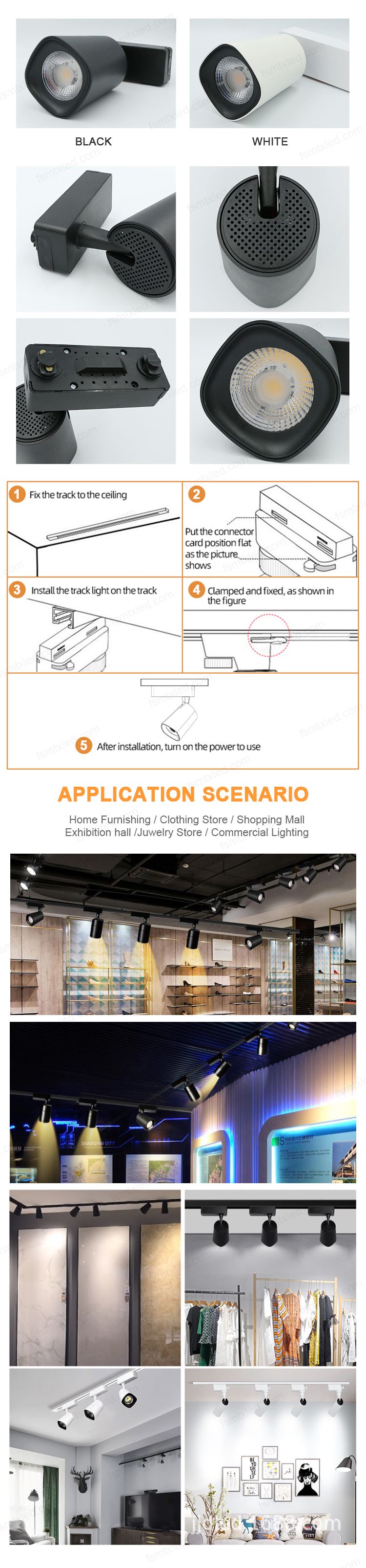 The track lights are compatible with various track bars. The design of the lamp body is exquisite and it features a flexible angle adjustment function. With the help of different track rails, they can achieve diverse layouts, providing precise and variable lighting effects for various spaces.