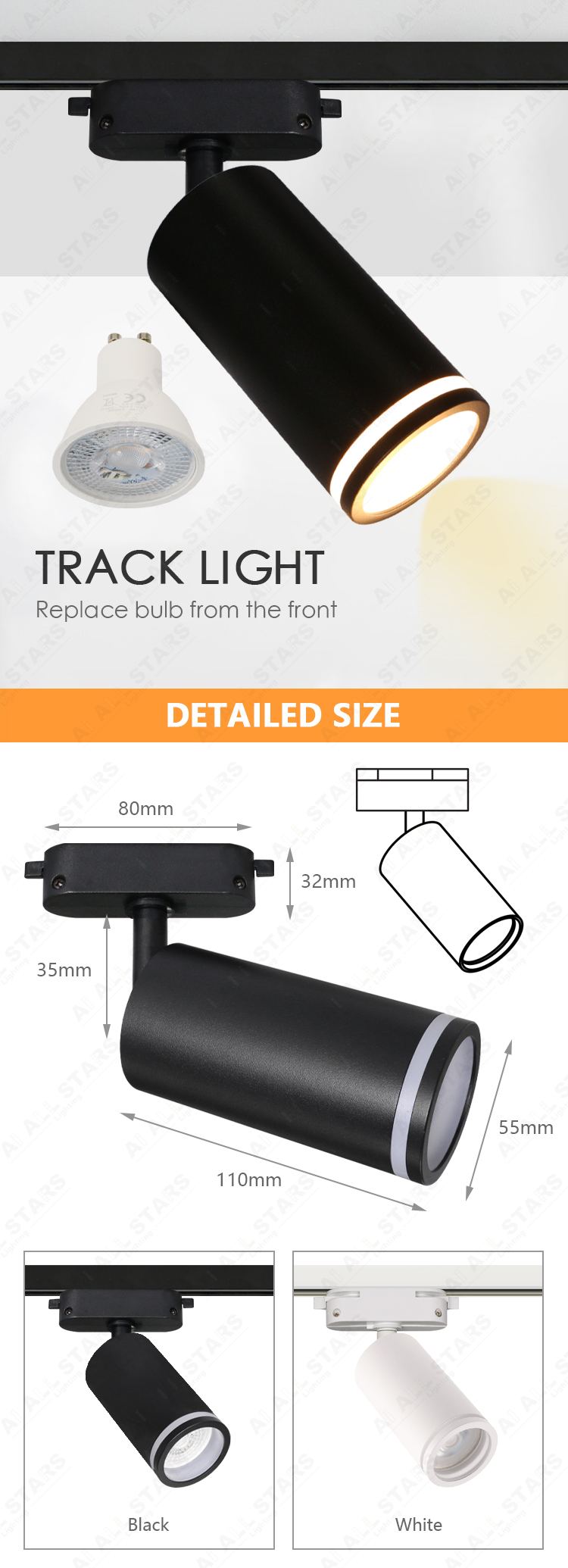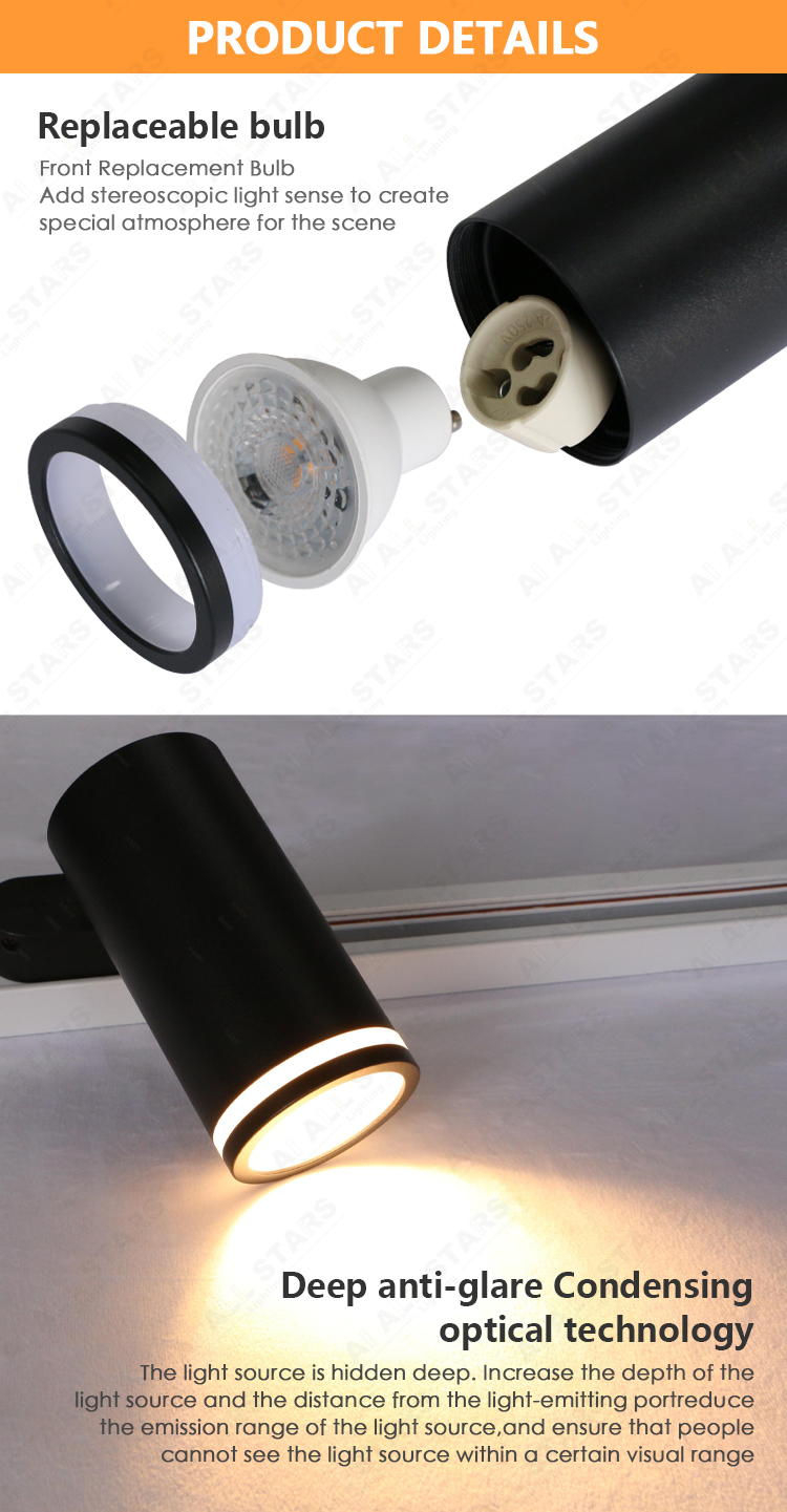 | MR16 Track light housing fixtures with Aluminum & ABS (Acrylic) presents a unique solution with GU10 or GU5.3 led source. It's ready to be operated with its easy installation and maintenance. |