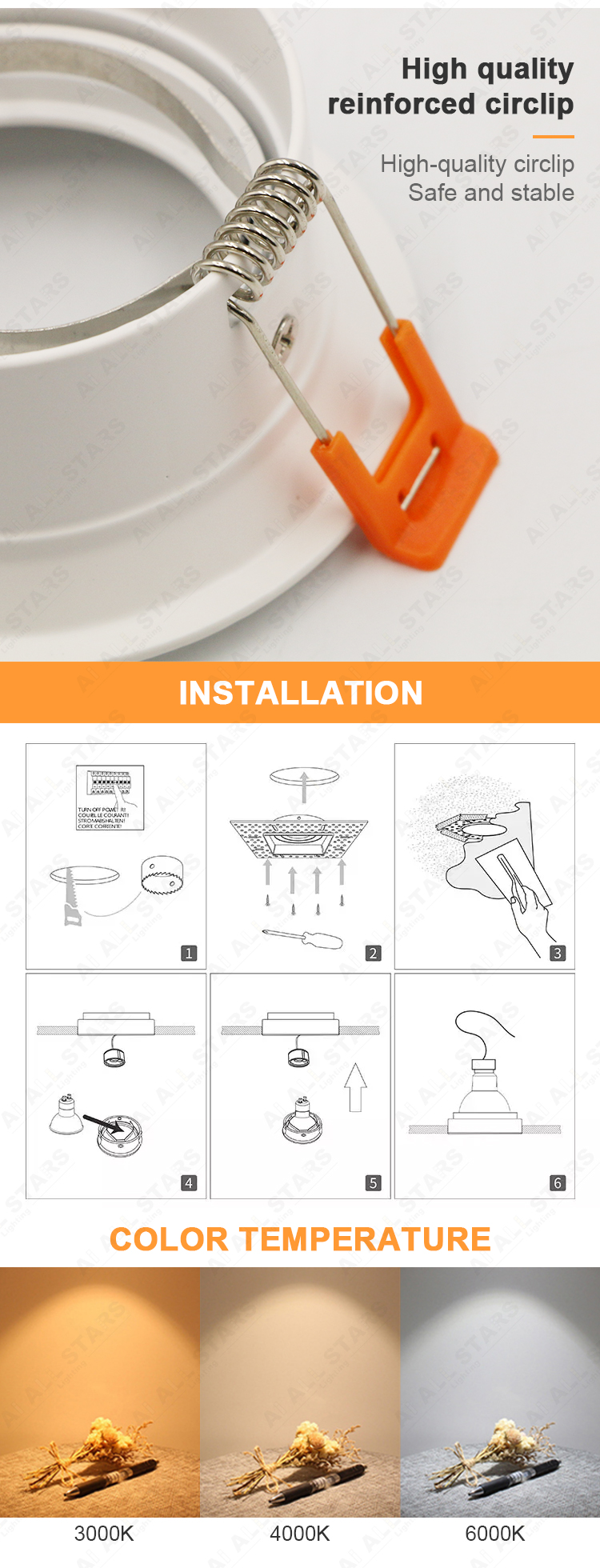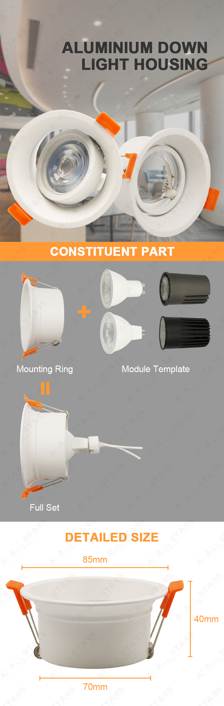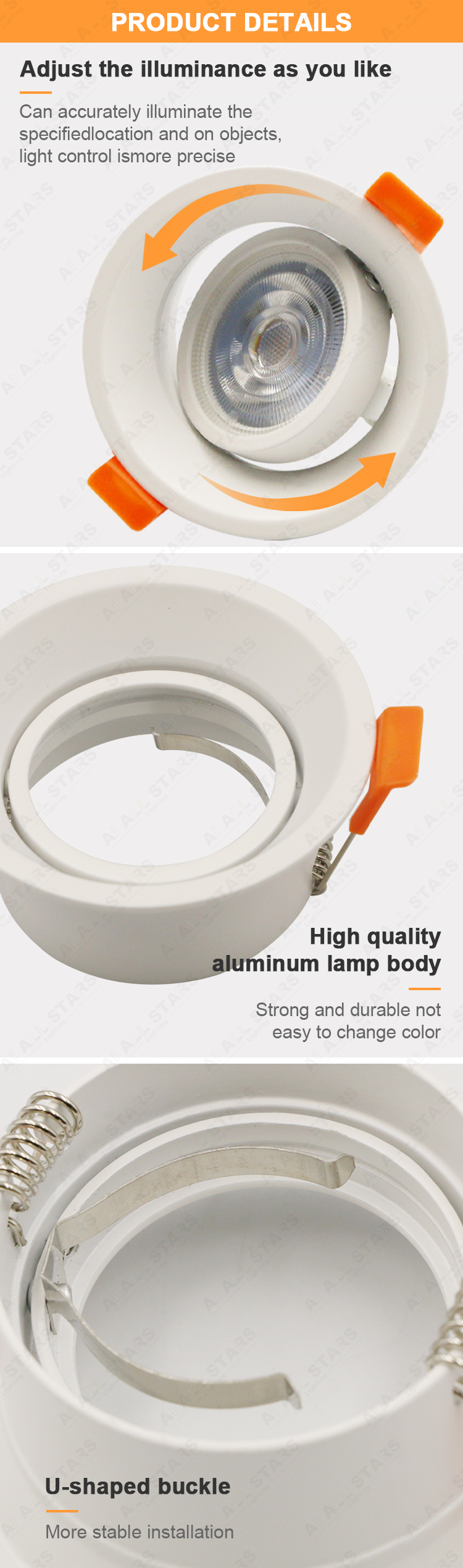 • Optioanl Lampholder: GU10, GU5.3, MR16 LED Module