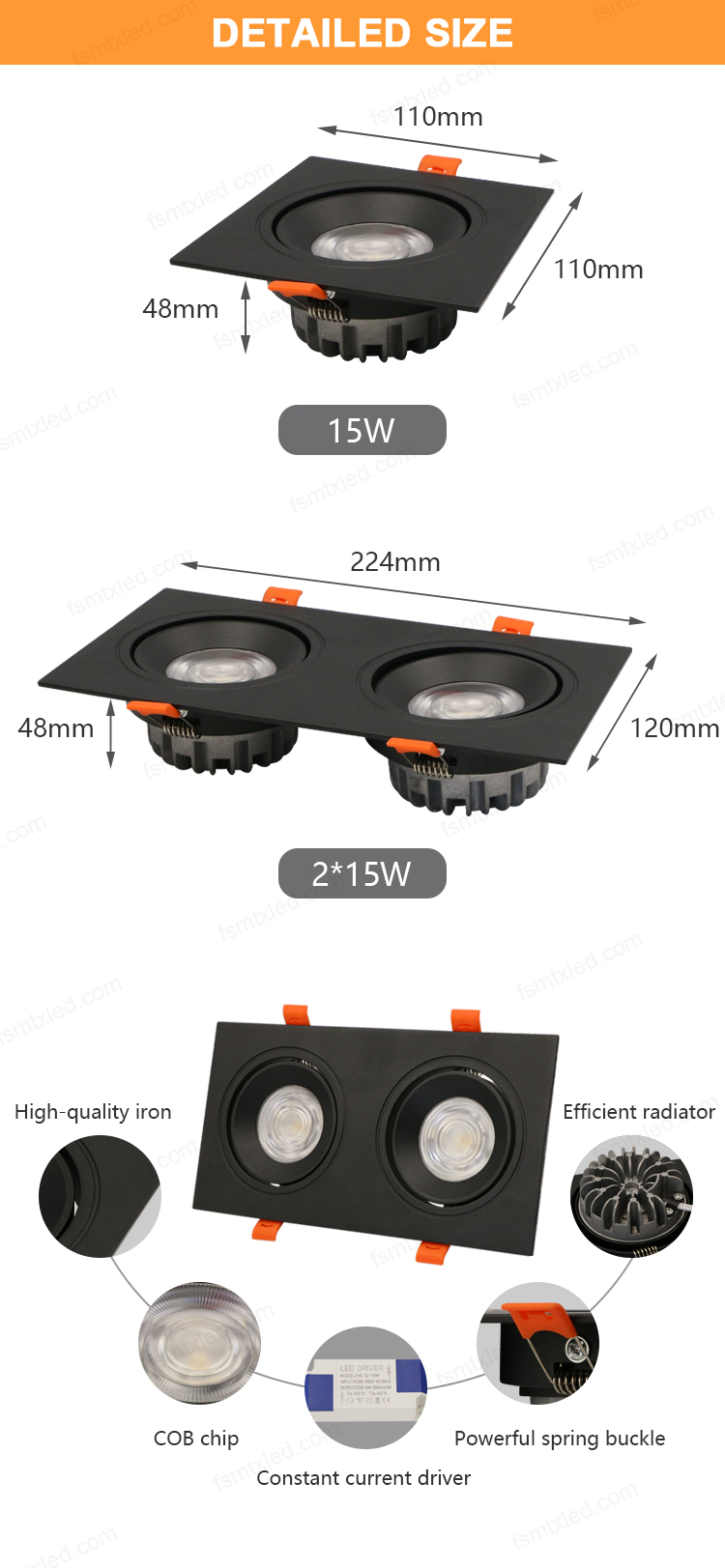 • Installation is convenient. Strong metal springs, easy to do the embedded installation into the ceiling.
