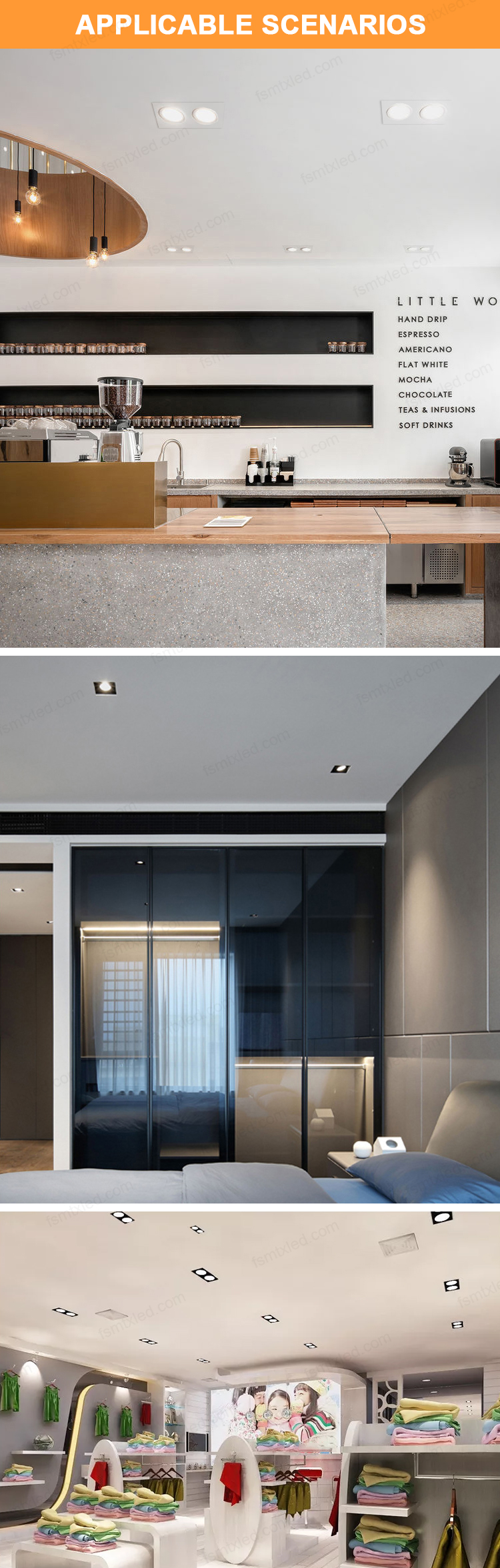 The embedded downlights are installed in an embedded manner, which can seamlessly blend with the ceiling. They feature a simple and elegant appearance, effectively saving space while providing uniform and soft light, thereby enhancing the overall lighting effect of the interior.