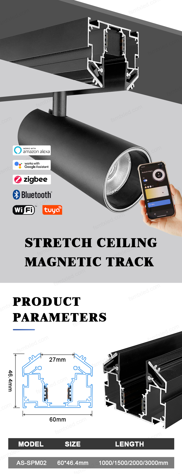 | Here are the dimensions and lengths of the magnetic stretch aluminum material AS-SPM02.Customers can choose the corresponding size products according totheir own needs, and the applicability ishigh.lf you are interested in our products,you can click the button to contact oursales representatives for more information. |