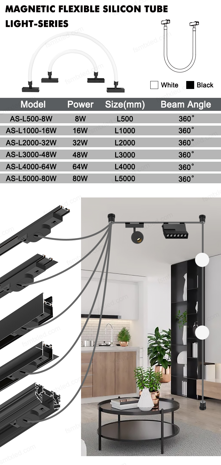The 24V low-voltage power supply ensures safety. The 48V ultra-thin magnetic track light integrates into various spaces with its ultra-thin design. It achieves flexible installation and position adjustment through magnetic suction, and is paired with high-brightness LED to provide energy-saving and aesthetically pleasing lighting effects.