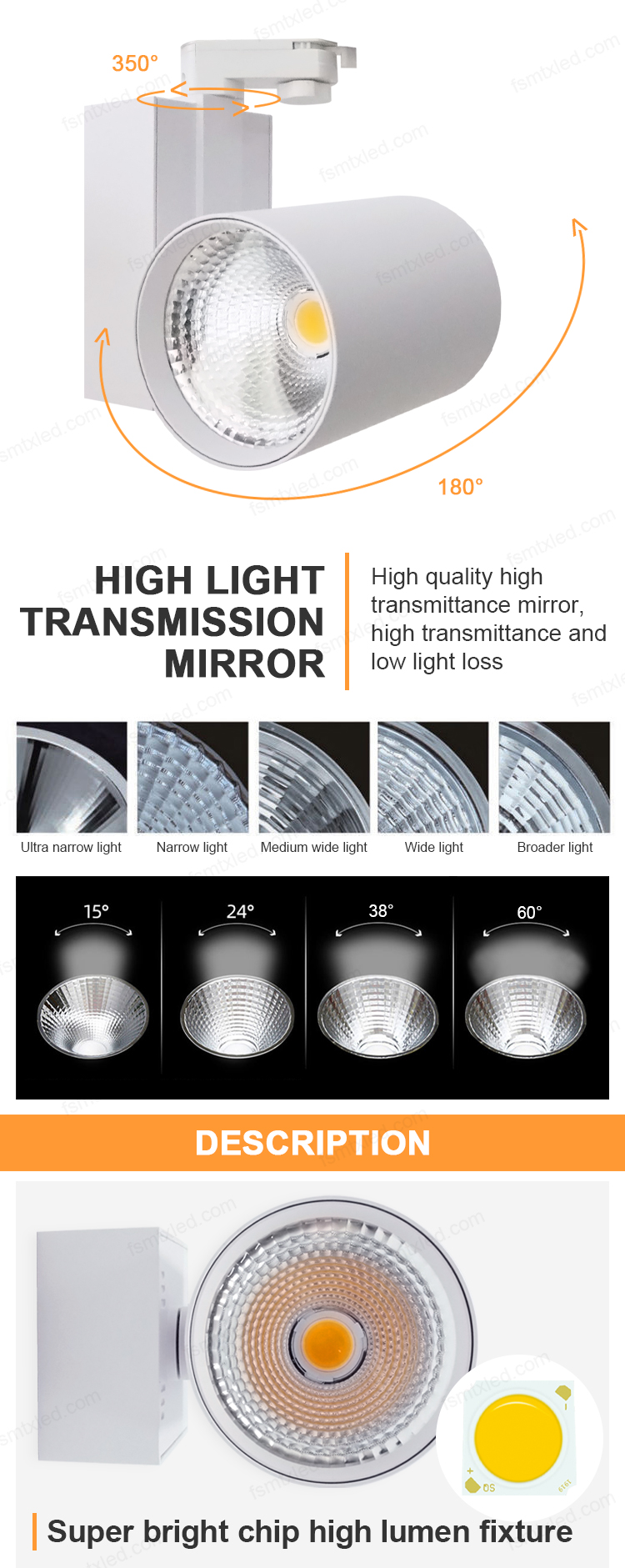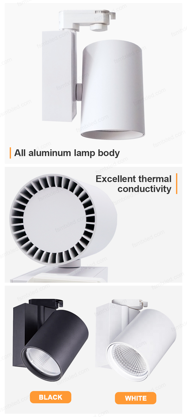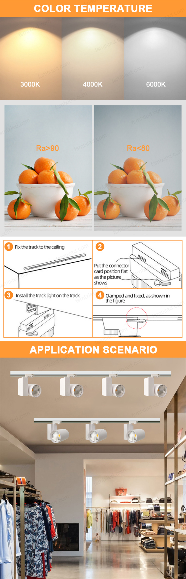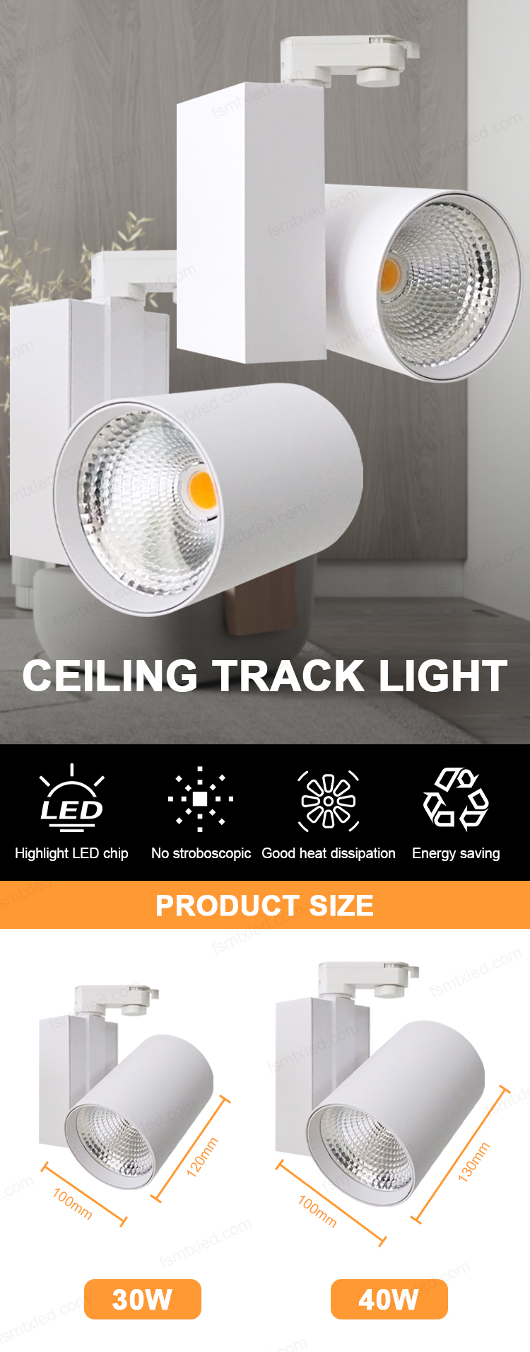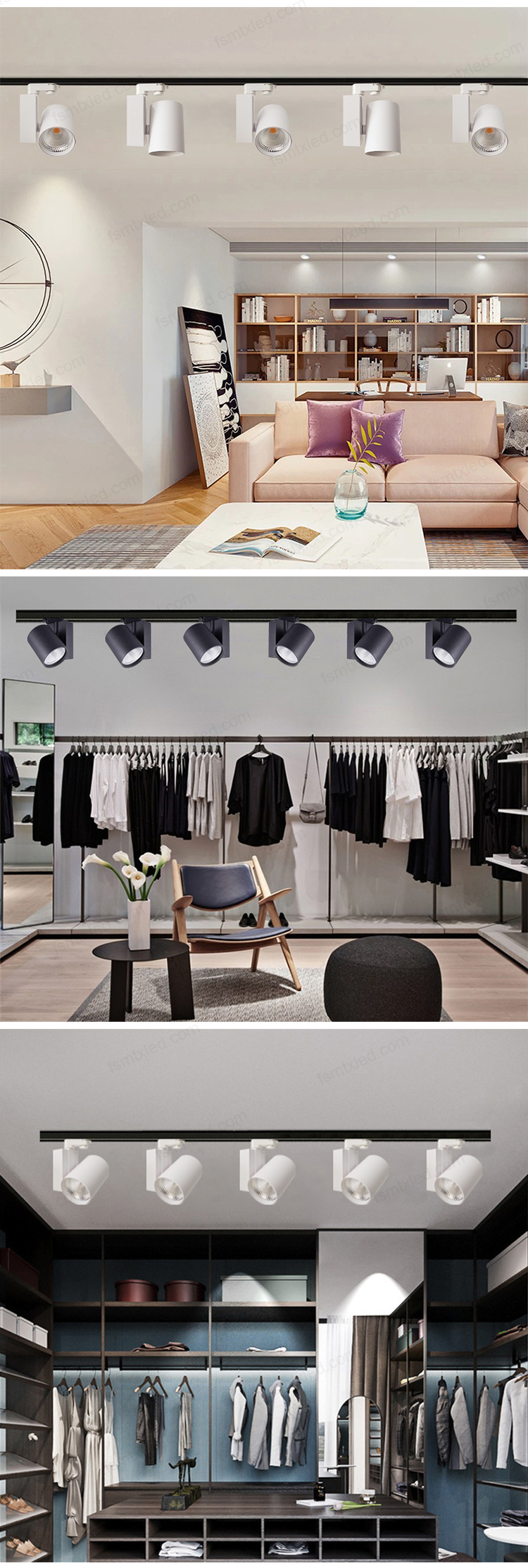 The LED COB track light adopts a 4-wire design, equipped with high-brightness and high-color-rendering COB light sources. Through the 4-wire track rail, it achieves precise power supply and flexible control. Whether it is brightness adjustment or color temperature switching, it is effortless and smooth. It brings outstanding, stable and diverse lighting effects to various spaces.