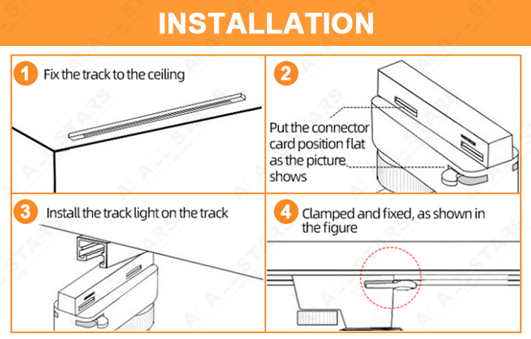 | Before installing the track lights, you must install the correct rails on the ceiling or wall, or you can suspension the track.2 wire 3 wire 4 wire led track rail head adapters correspond to lamps fixtures with 2-wire 3-wire 4-wire track rail head respectively. |