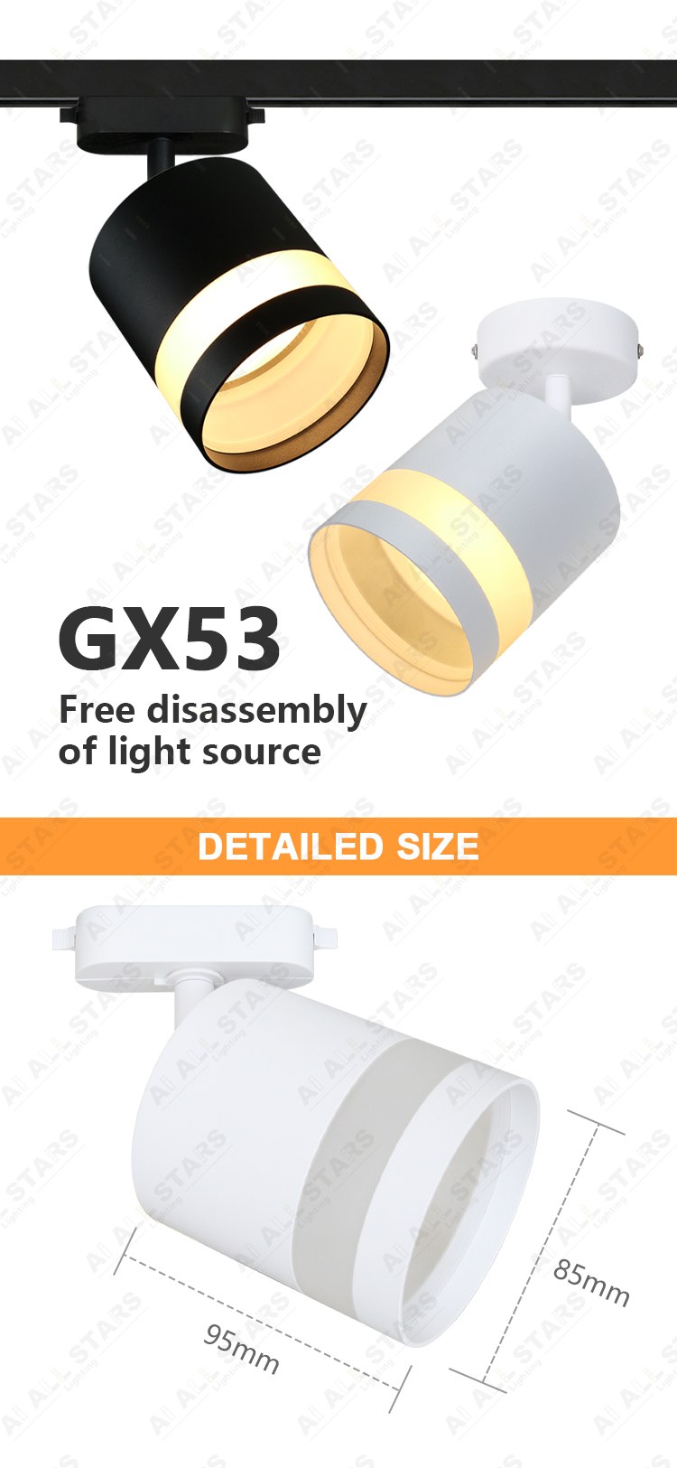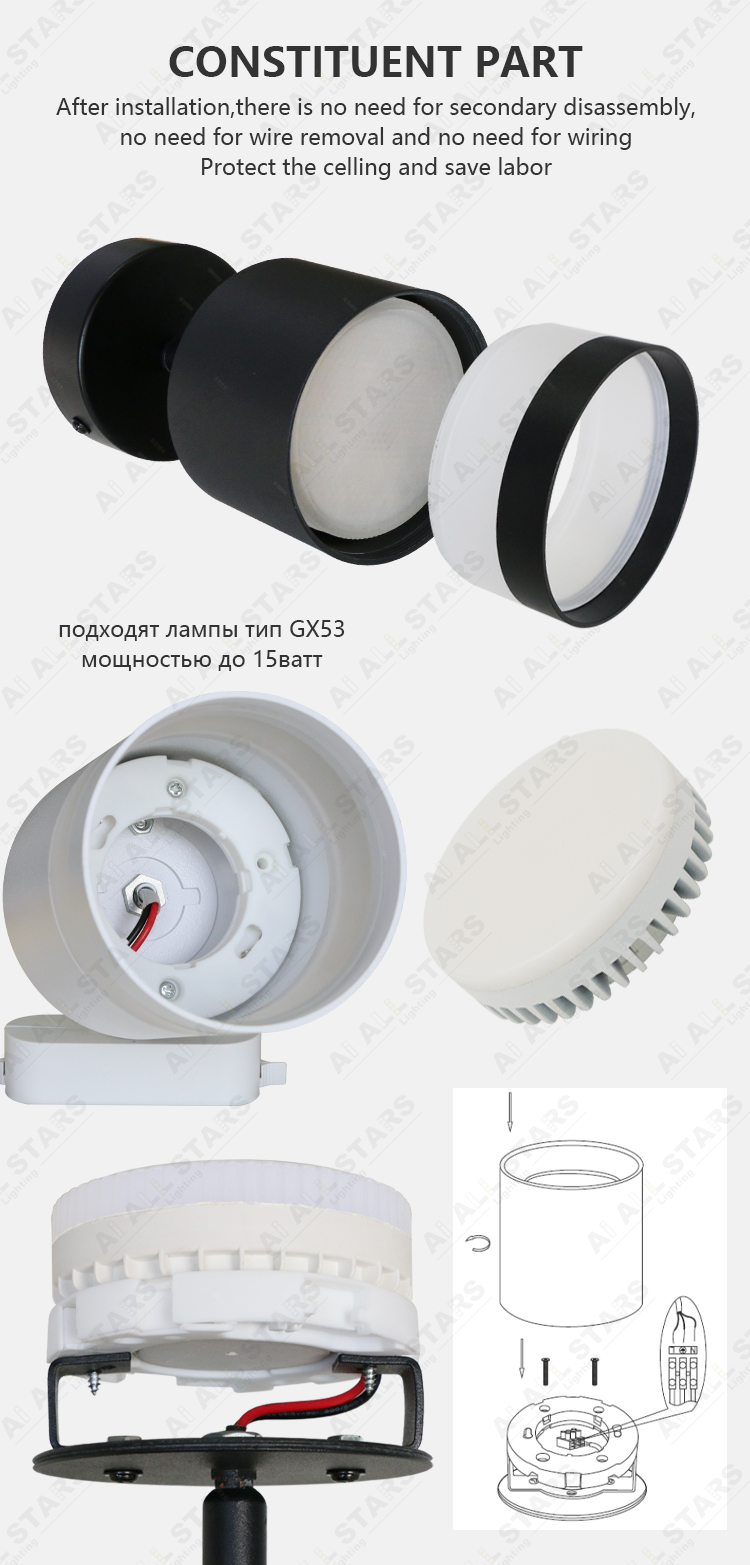 GX53 Lamp Features ● These luminaires are designed for general and decorative lighting of residential and public premises, lighting shelves and niches, lighting shop windows, lighting living rooms, bedrooms, kitchens, etc.