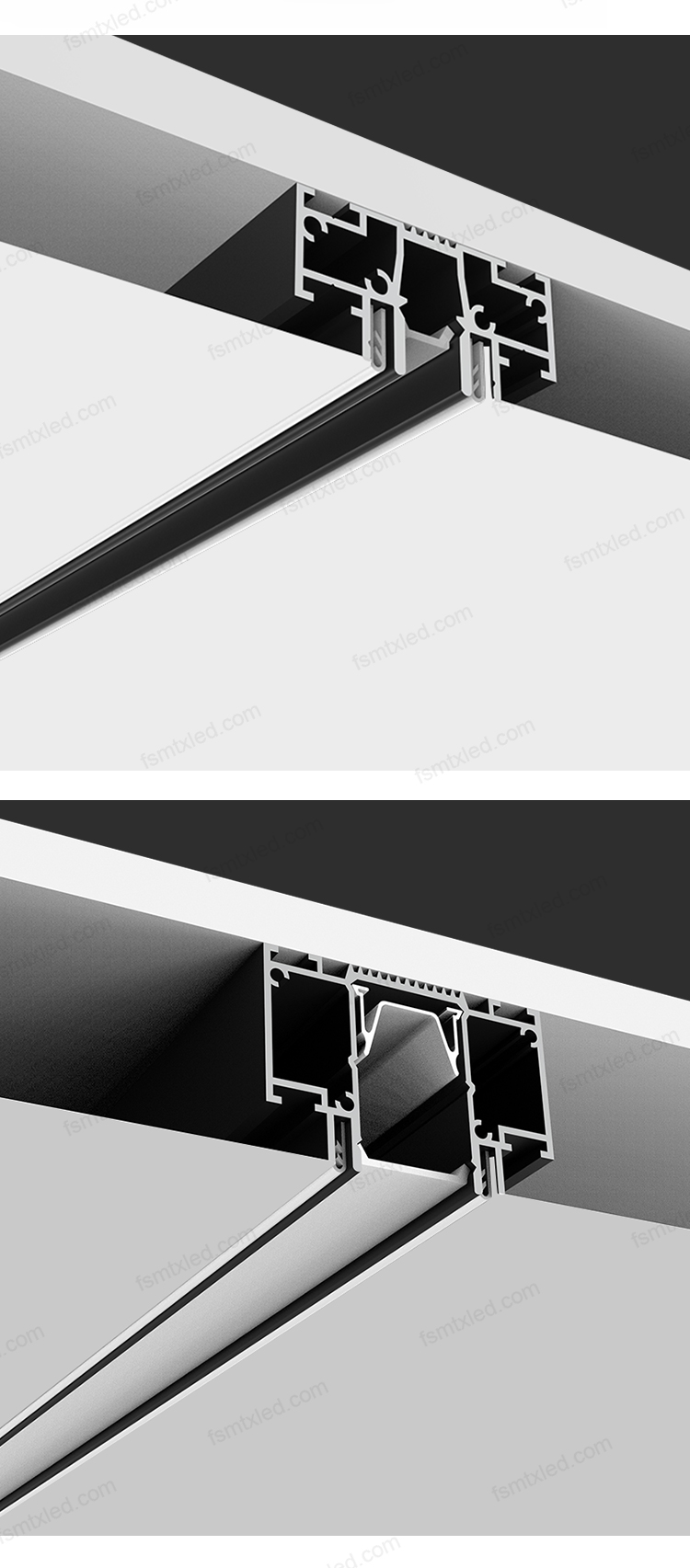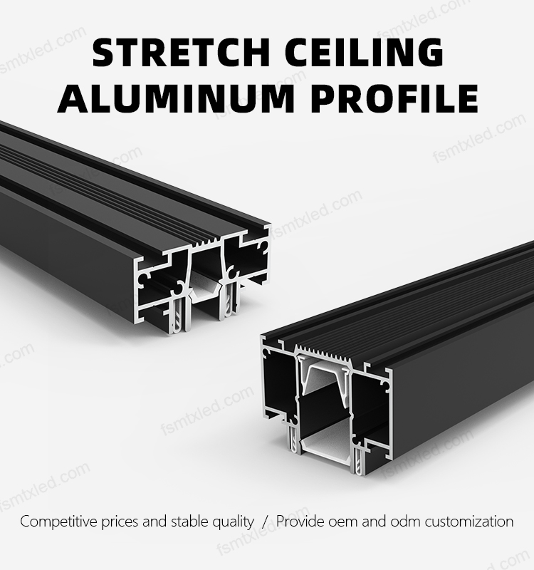 The AS-D14 light strip stretched ceiling profile can be used in combination with PVC film to form a stretched ceiling, or it can be used in conjunction with hidden light strips to achieve soft lighting.The installation of the stretched ceiling aluminum material is simple, and its maintenance cost is low. It is suitable for various scenarios such as homes, shopping malls, hotels, and offices.