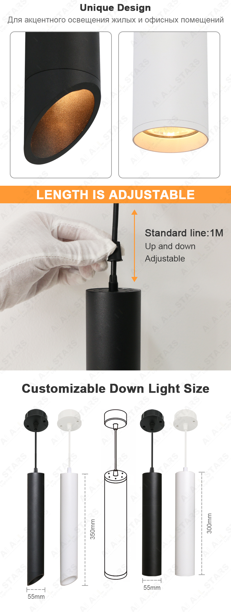 | LED PENDANT LIGHT FEATURES: Using a special lock located at the base, you can adjust the length of the suspension up to 1m Recessed position of the LED provides a high level of visual comfort Efficient and uniform illumination by direct incident light beams Durable and lightweight aluminum body Diverse and functional series in various colors and sizes |