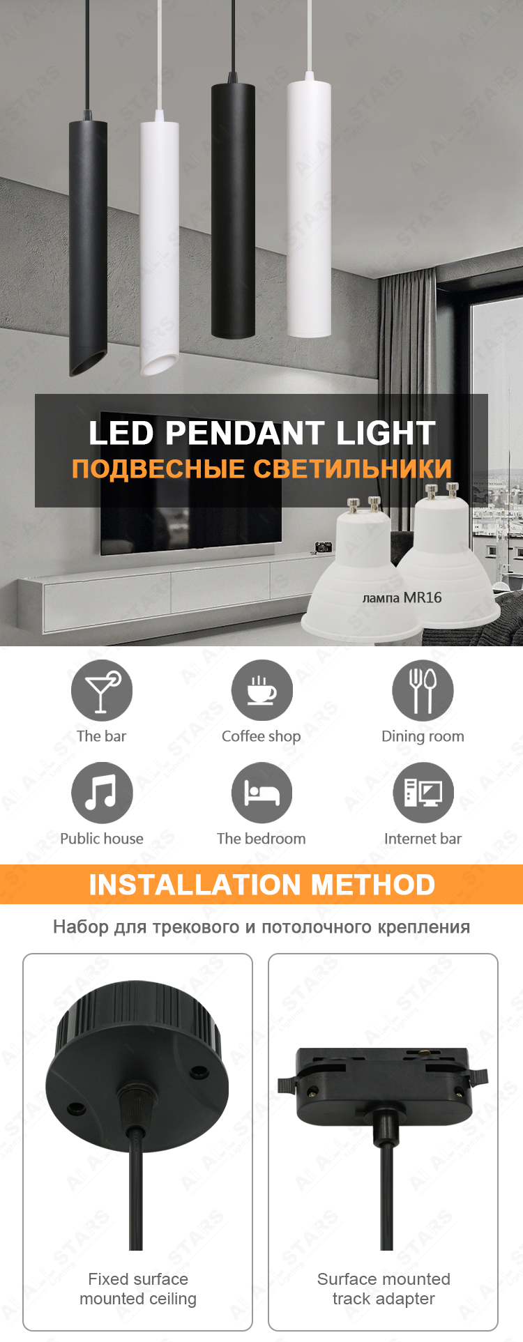 | Cylindrical downlights led chandeliers pendant lights are designed for general and accent lighting in offices, trade and exhibition halls, public catering facilities, and modern residential interiors. The compact size and laconic design of the lamps allow them to fit organically into any interior, focusing on the most important. |