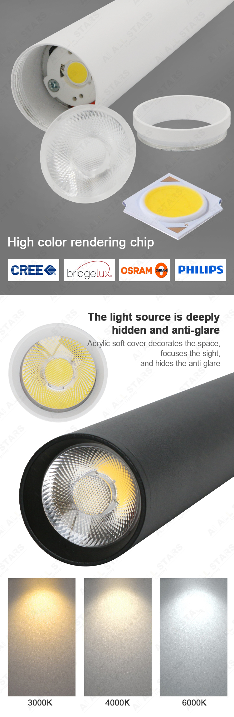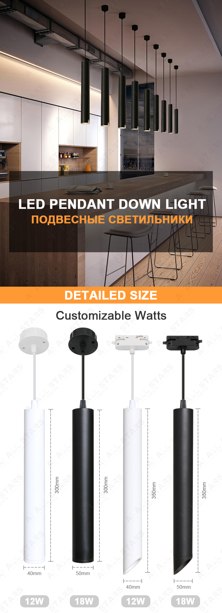 Cylindrical downlights led chandeliers pendant lights are designed for general and accent lighting in offices, trade and exhibition halls, public catering facilities, and modern residential interiors. The compact size and laconic design of the lamps allow them to fit organically into any interior, focusing on the most important.