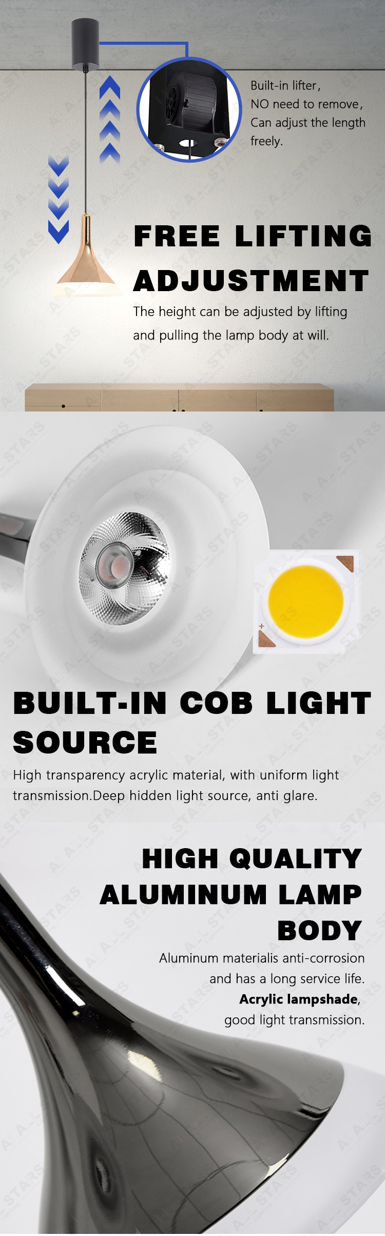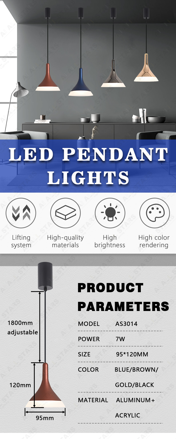 Led pendant light chandelier surface mounted suspension installation, very flexible, and easy to do installations. You can adjust the length of steel ropes to meet the different heights of the ceiling