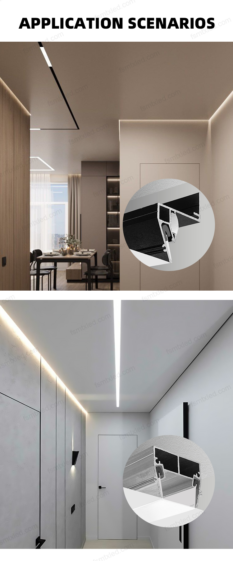 The AS-D15 light strip stretched ceiling profile can be used in combination with PVC film to form a stretched ceiling, or it can be used in conjunction with hidden light strips to achieve soft lighting.The installation of the stretched ceiling aluminum material is simple, and its maintenance cost is low. It is suitable for various scenarios such as homes, shopping malls, hotels, and offices.