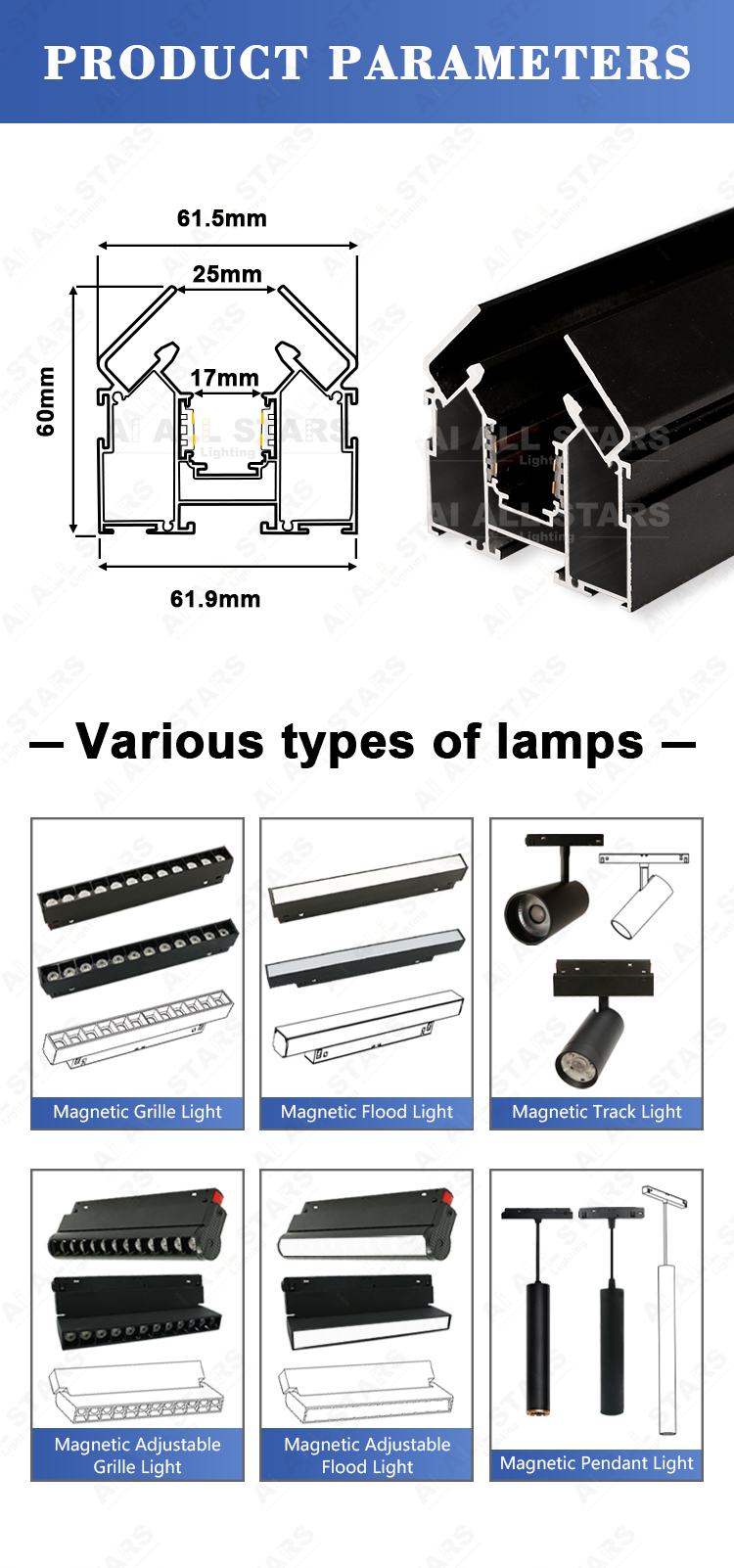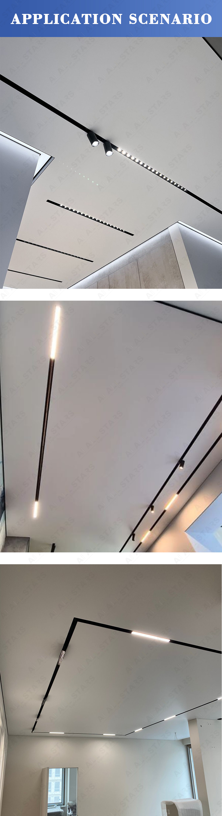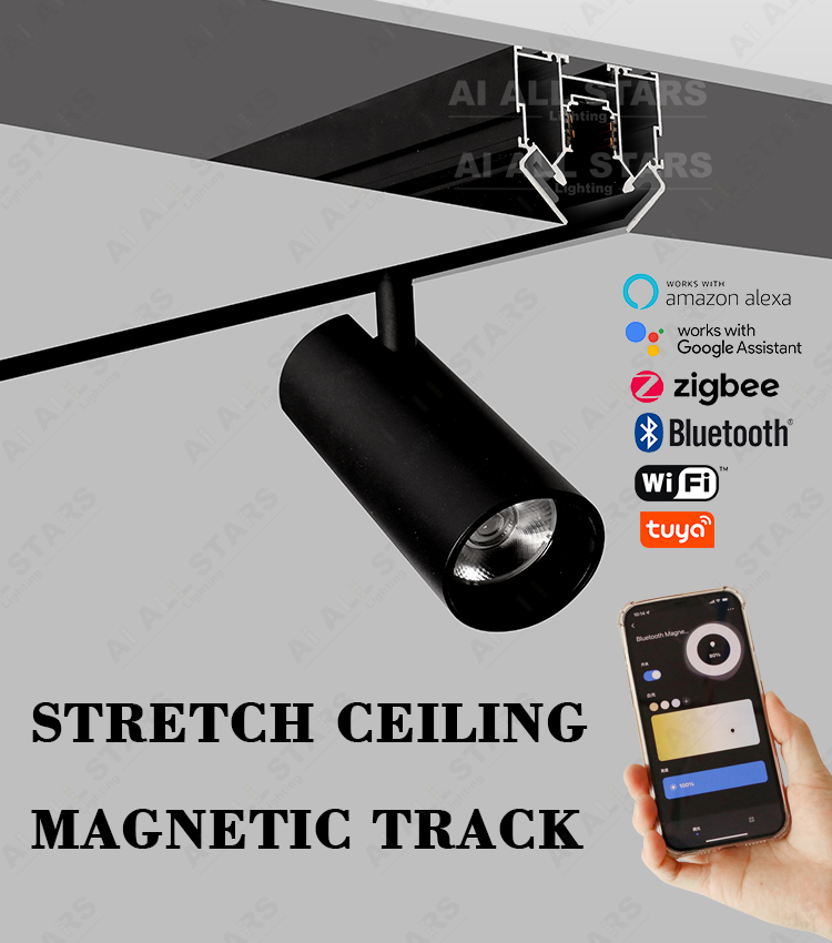 This product is a Stretch Ceiling Magnetic Track. It can be installed on the ceiling and used together with magnetic lamps. It can be compatible with various decoration styles and meet the diversified design requirements of customers.