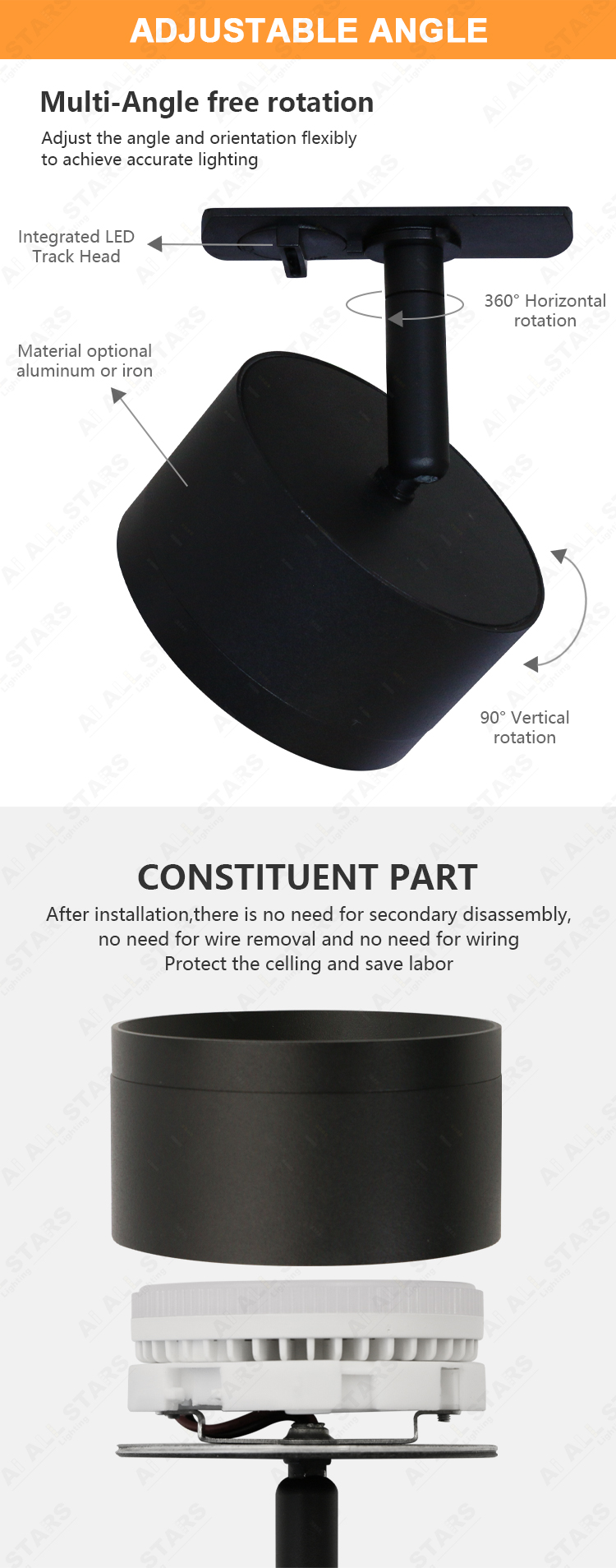 Integrated LED Track Head Led Gx53 SpotLight Housing